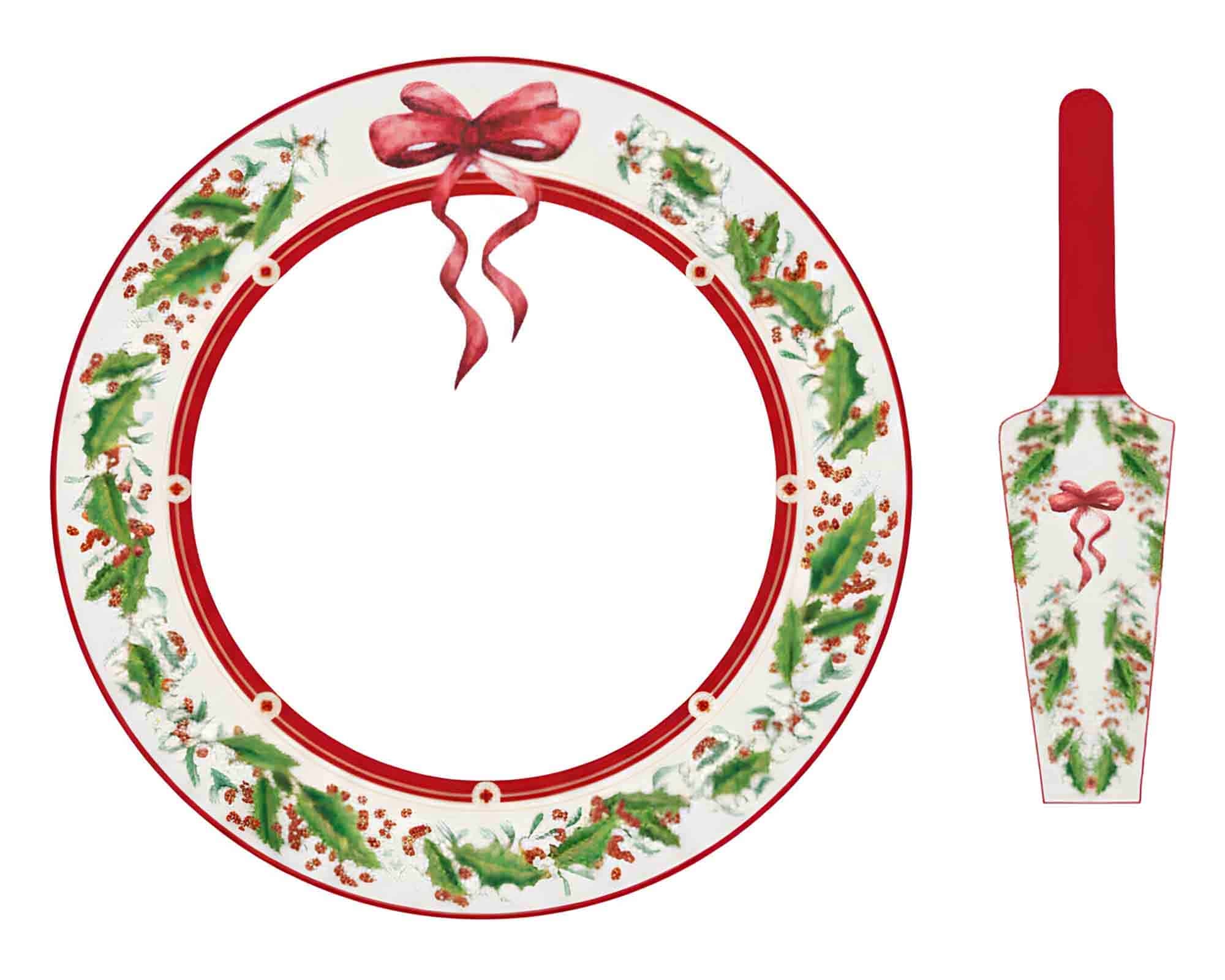 Piatto per Panettone con Paletta e Fiocco di Natale D30cm in Porcellana – Arca