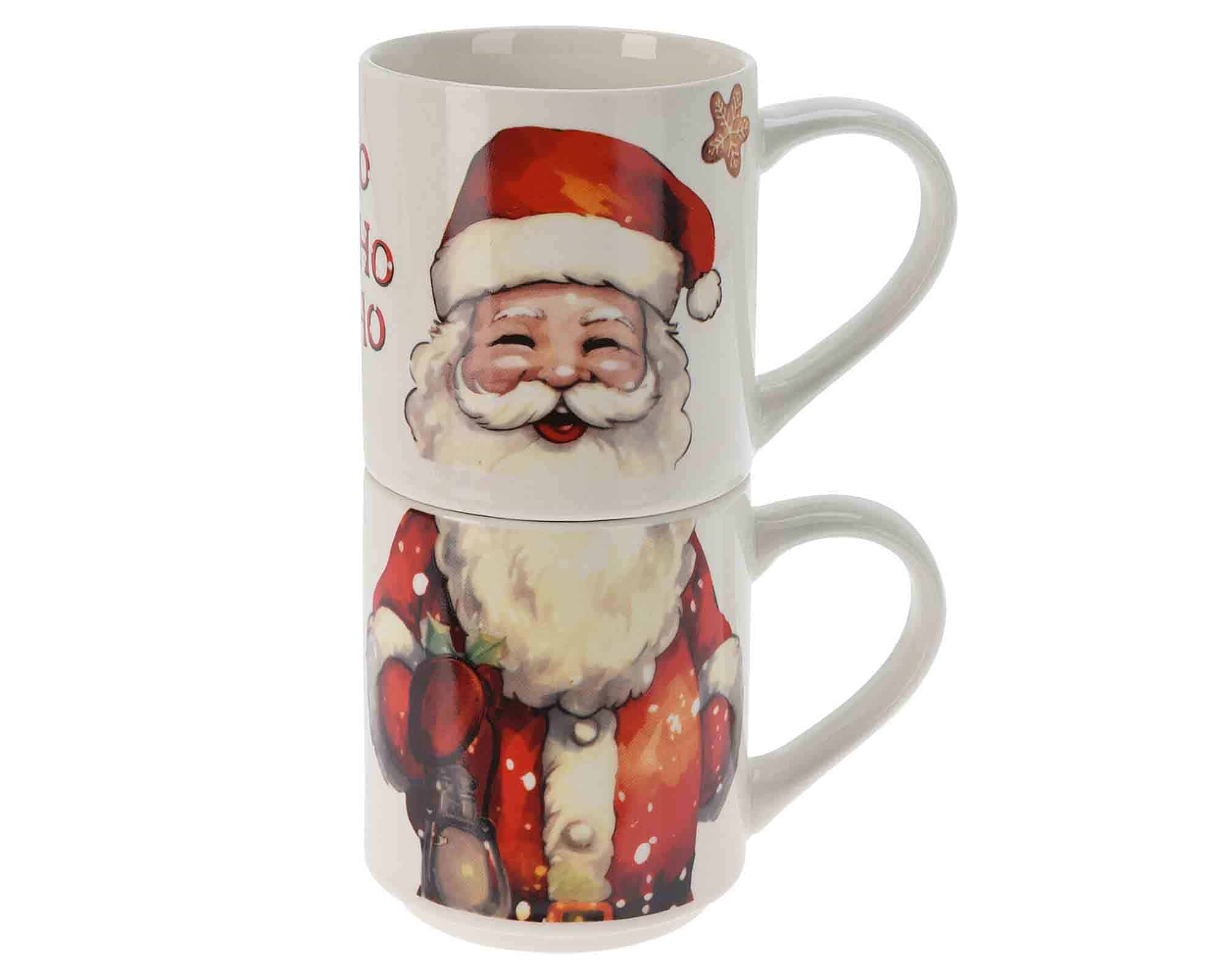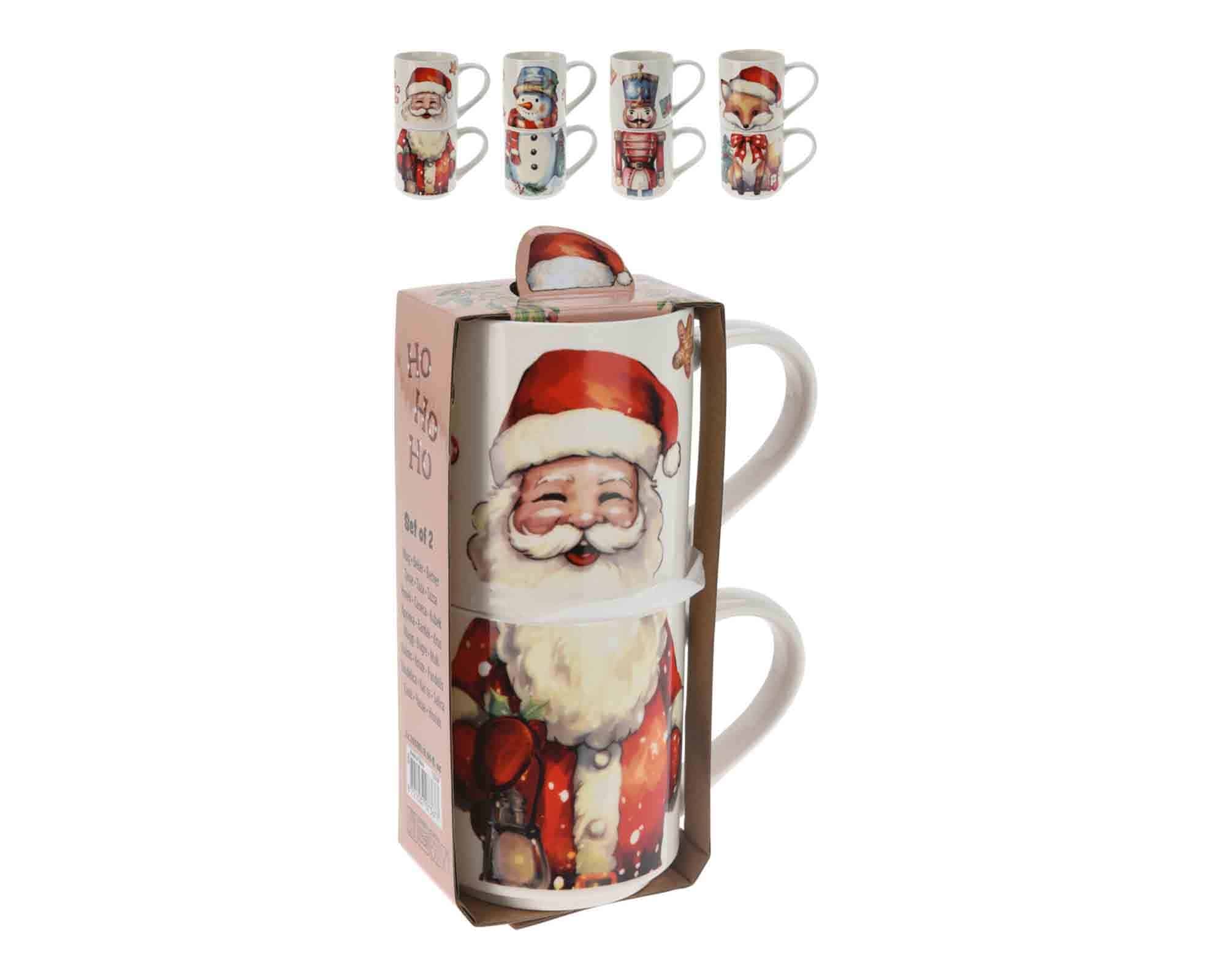 Set 2 Pz Tazza di Natale New Bone con Babbo Natale Assortito 265ml in Porcellana