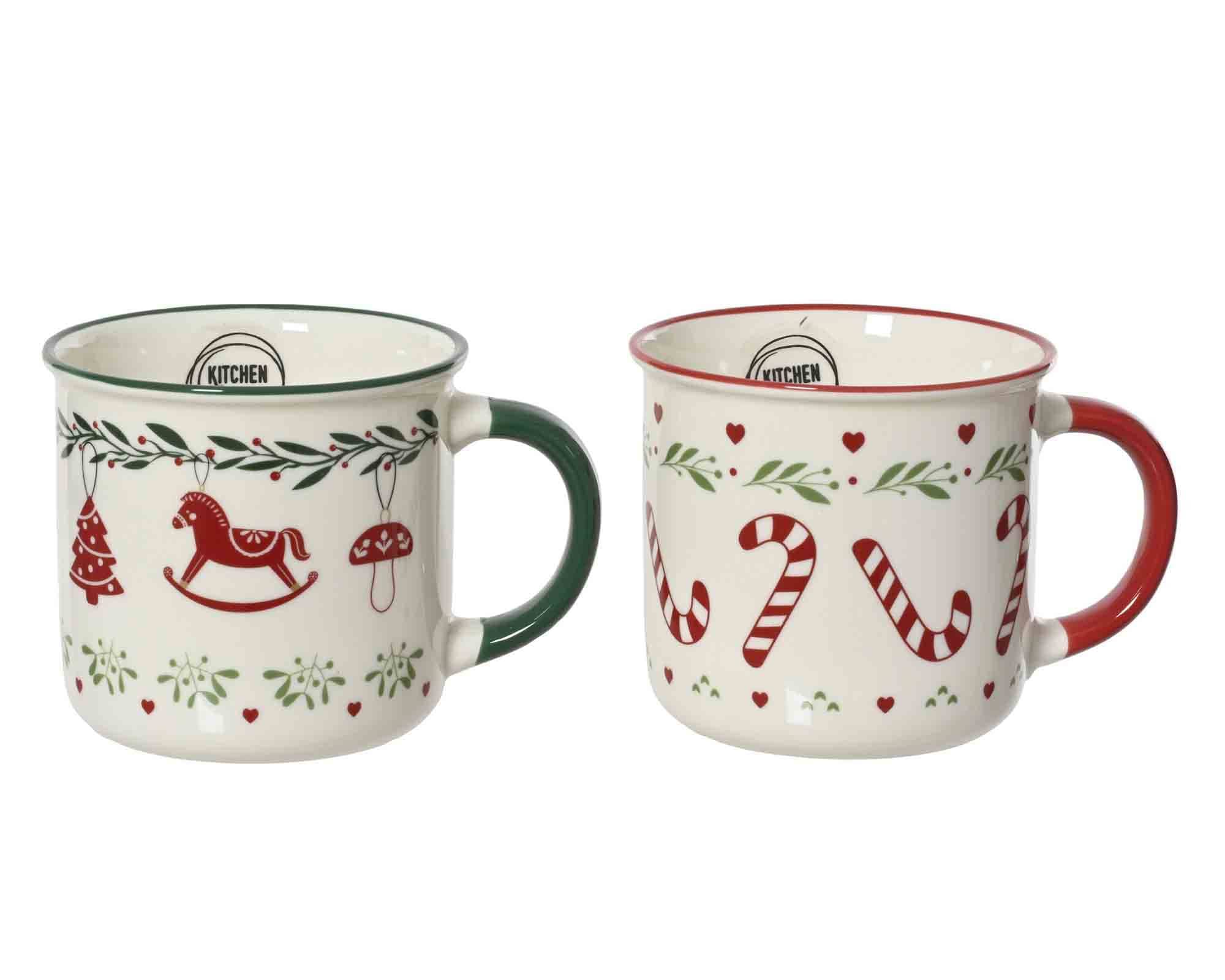 Tazza Bianca con Decorazioni Natalizie Assortito D10x8cm in Porcellana