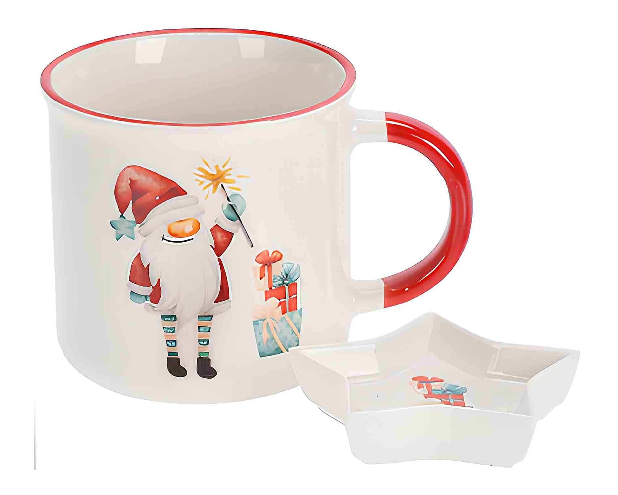 Tazza di Natale con Piattino Assortito D7,5x8cm in Porcellana