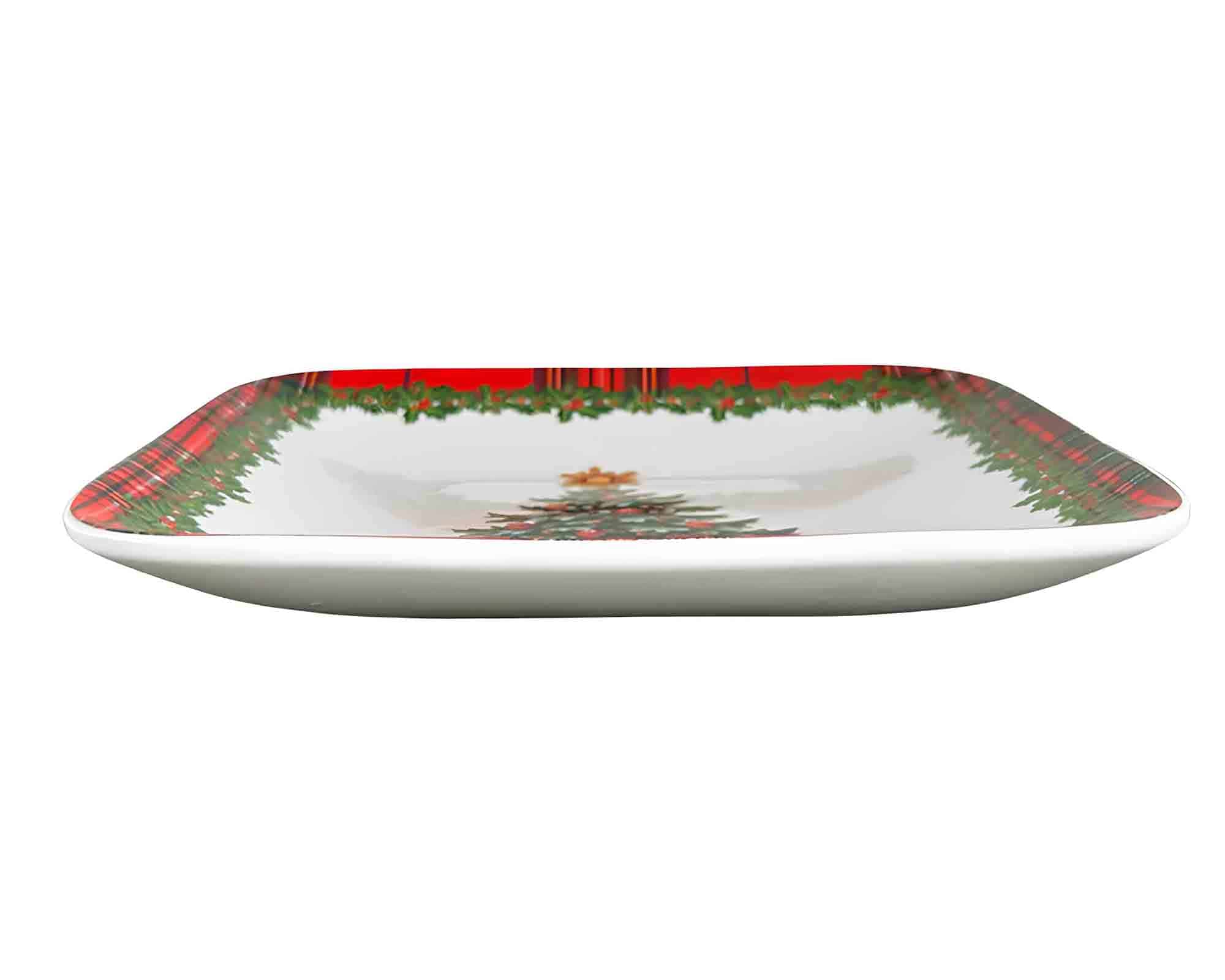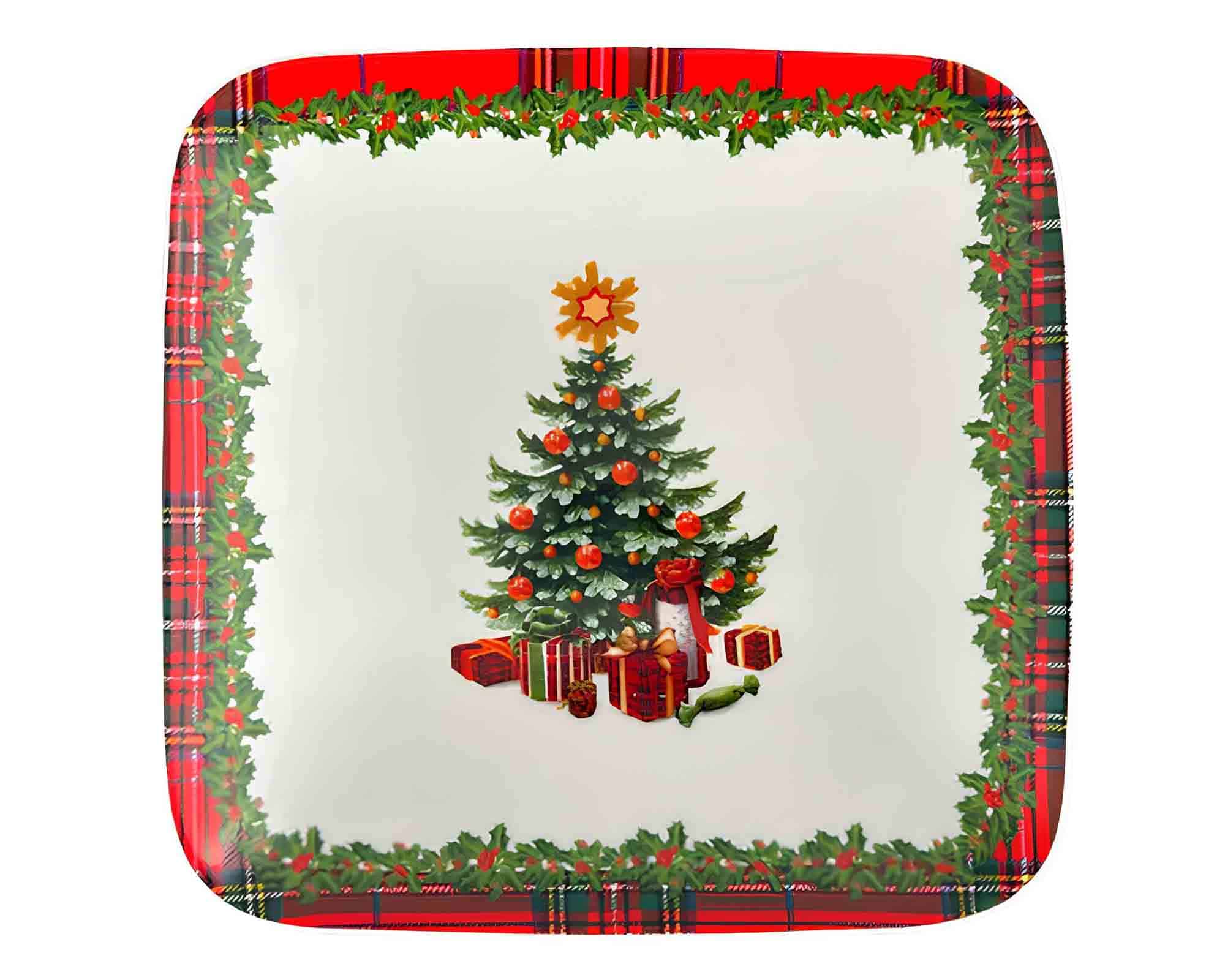 Vassoio Quadrato Scozzese con Albero di Natale 18x18cm in Porcellana – Arca