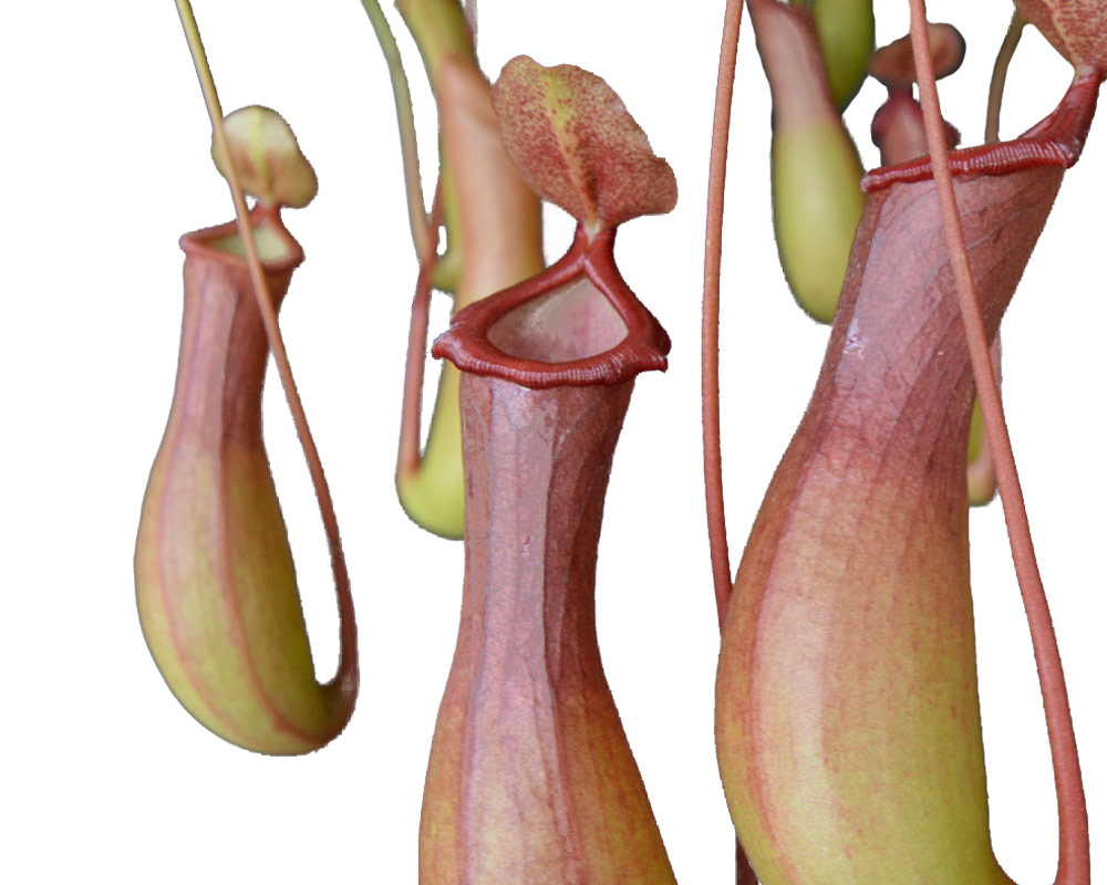 Note anche per le loro notevoli qualita’ ornamentali, le Nepenthes sono caratterizzate anche dalle esigenze particolari che richiedono nella loro coltivazione. Sono piante originarie delle foreste tropicali asiatiche e di alcune aree del Madascar e dell’ Australia. In natura si presentano sotto moltiplici aspetti a seconda della specie, tutte caratterizzate dal particolare ascidio: ne esistono a forma di becher e di caraffa, di bicchieri per vino dal collo stretto e di flutes da champagne lunghi e sottili. Ve ne sono di piccole dimensioni che paiono lampade spente appese sui tronchi degli alberi.
