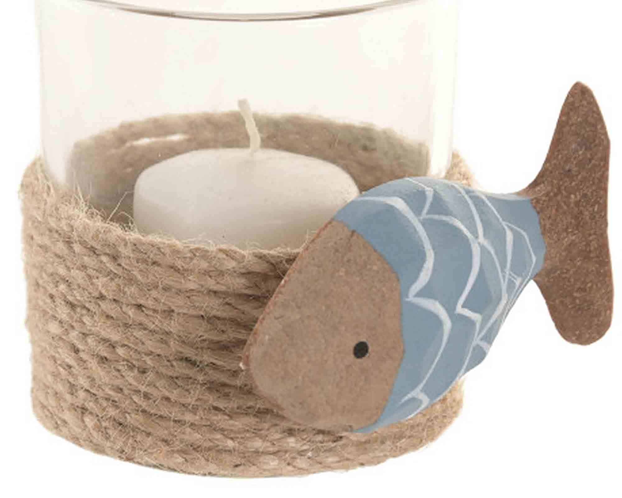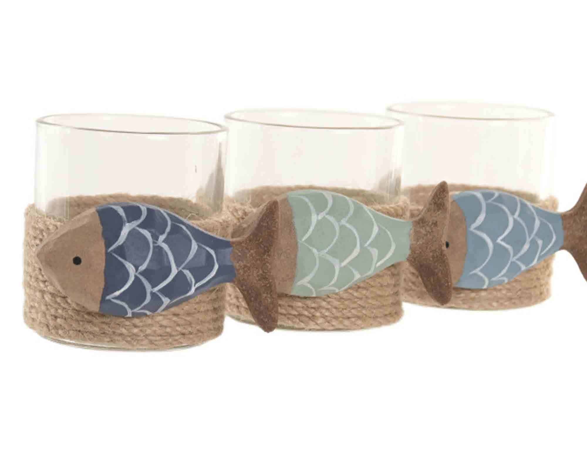 Portacandela con Pesce Assortito 8x10x8cm in Vetro e Resina – Item