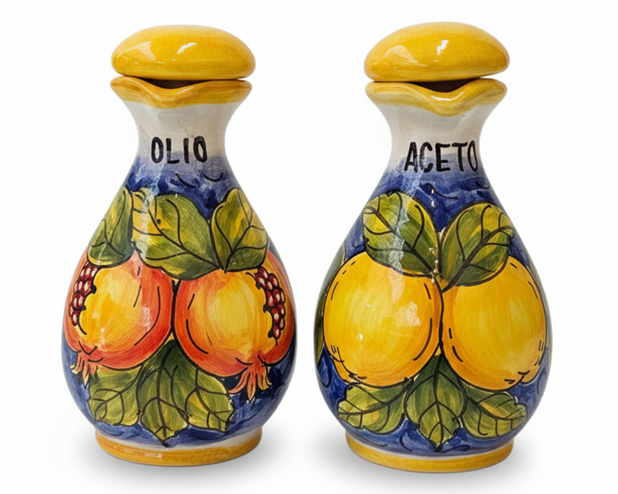 Il Set Olio e Aceto con cestello in ceramica è un elegante complemento da cucina, ideale per arredare tavoli, credenze o angoli cucina con stile e funzionalità. Realizzato in ceramica di alta qualità, ogni pezzo è dipinto a mano, garantendo unicità e pregio artigianale.
