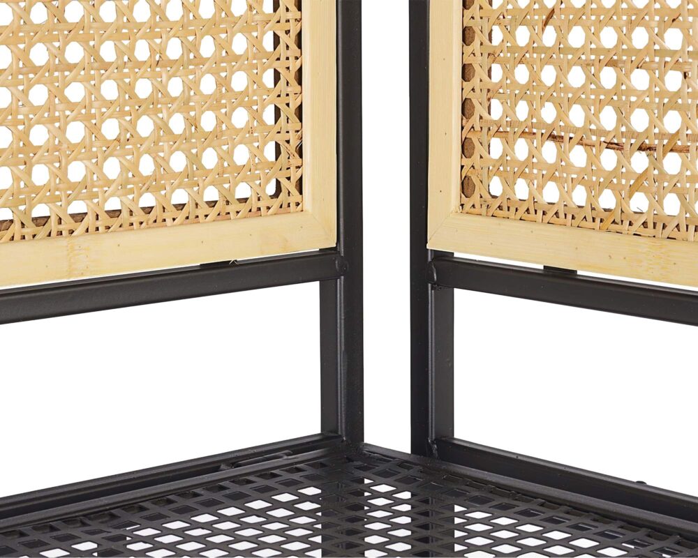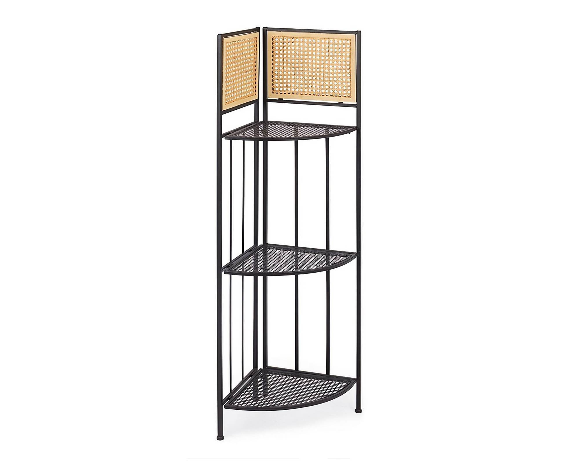 La struttura dell’angoliera è realizzata in robusto acciaio massello e rifinita con una vernice bianca lucida che dona luminosità e freschezza all’ambiente. I tre ripiani a gradoni in legno permettono di posizionare oggetti di diverse dimensioni e creare un piacevole effetto decorativo, senza rinunciare alla funzionalità.