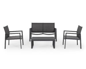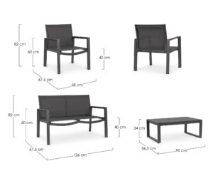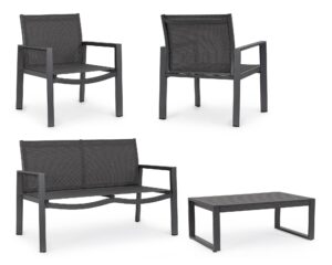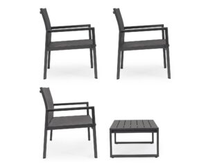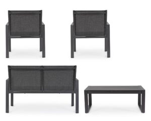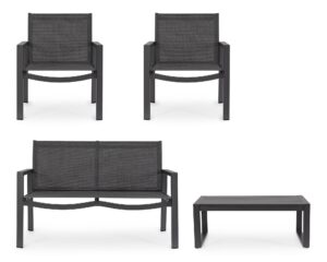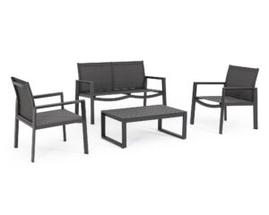 Set 4 Pz Salotto Kallen Antracite in Alluminio, Acciaio e Textilene – Bizzotto