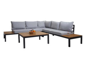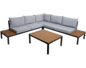 La struttura in alluminio garantisce leggerezza e durabilità, resistendo alle intemperie e alla corrosione, mentre il legno di teak aggiunge un tocco di calore e naturalezza. I cuscini spessi e comodi sono realizzati con tessuti di alta qualità, resistenti ai raggi UV e all’umidità, assicurando un comfort duraturo. Ogni pezzo del set è progettato per offrire il massimo del comfort e della praticità, con linee pulite e una costruzione solida.