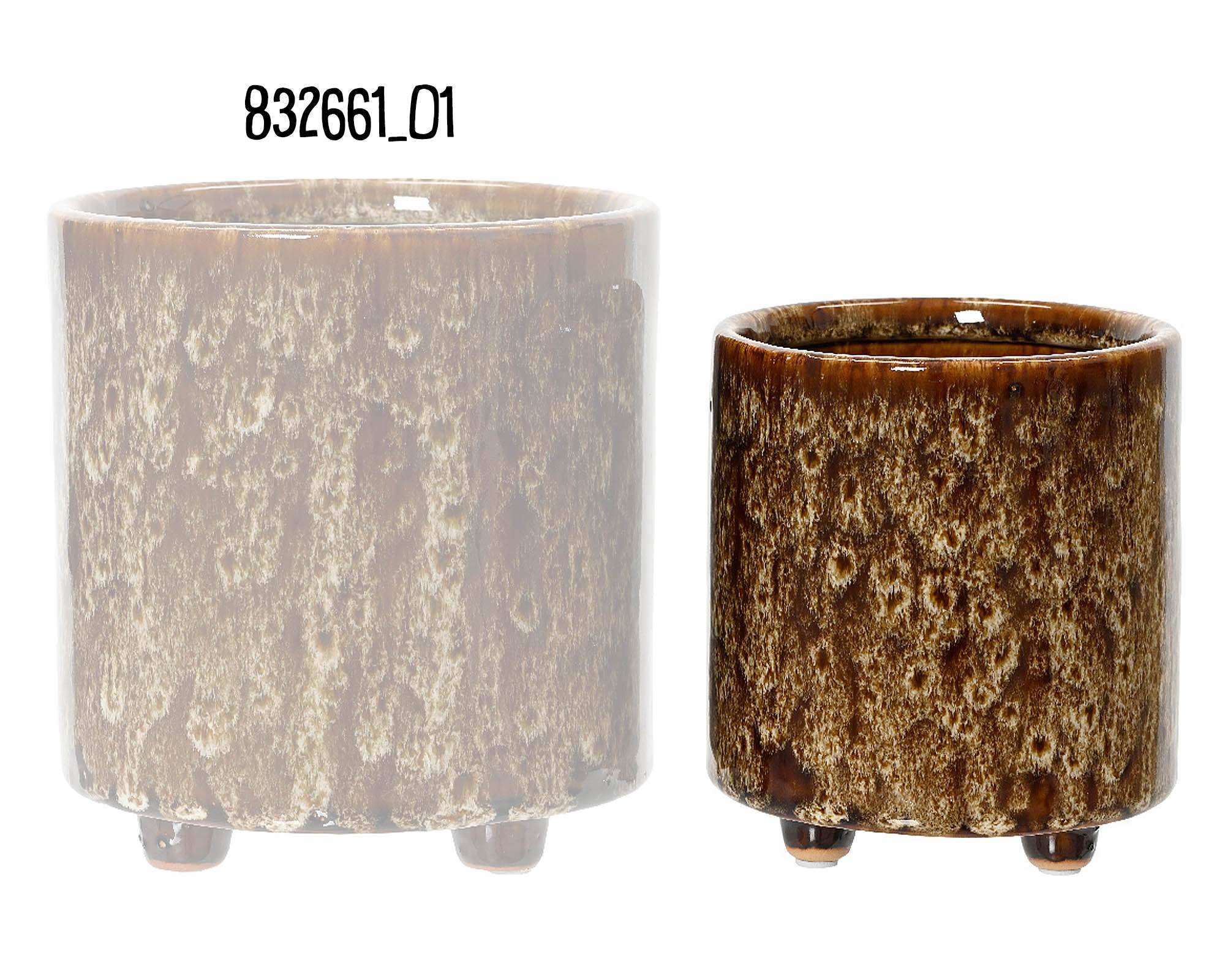 Cachepot con Piedini Smaltato Marrone D14,5x15cm in Ceramica – Kaemingk