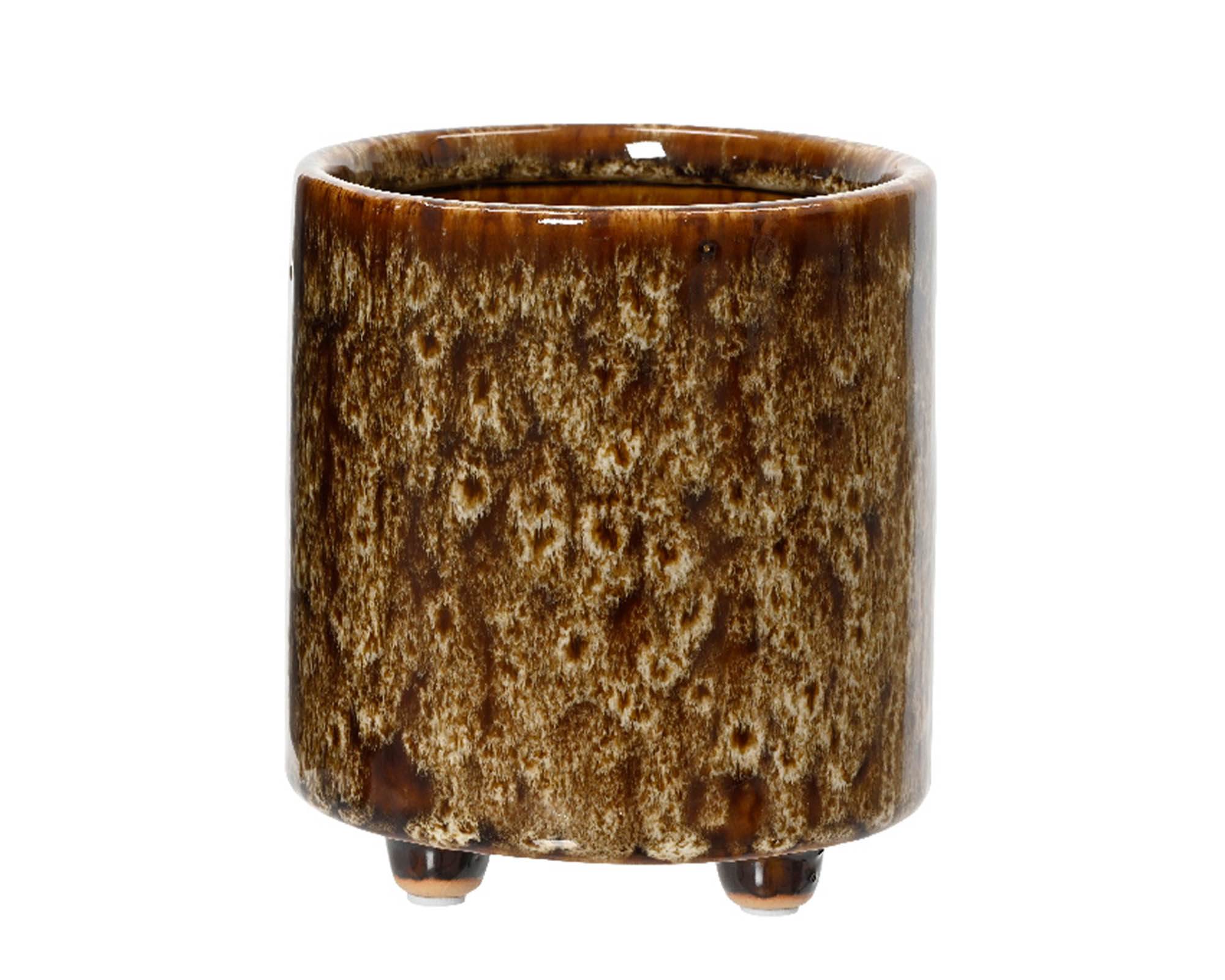 Cachepot con Piedini Smaltato Marrone D11x12cm in Ceramica – Kaemingk