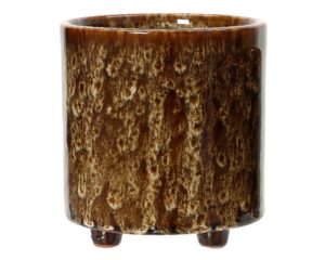 Cachepot con Piedini Smaltato Marrone D11x12cm in Ceramica – Kaemingk