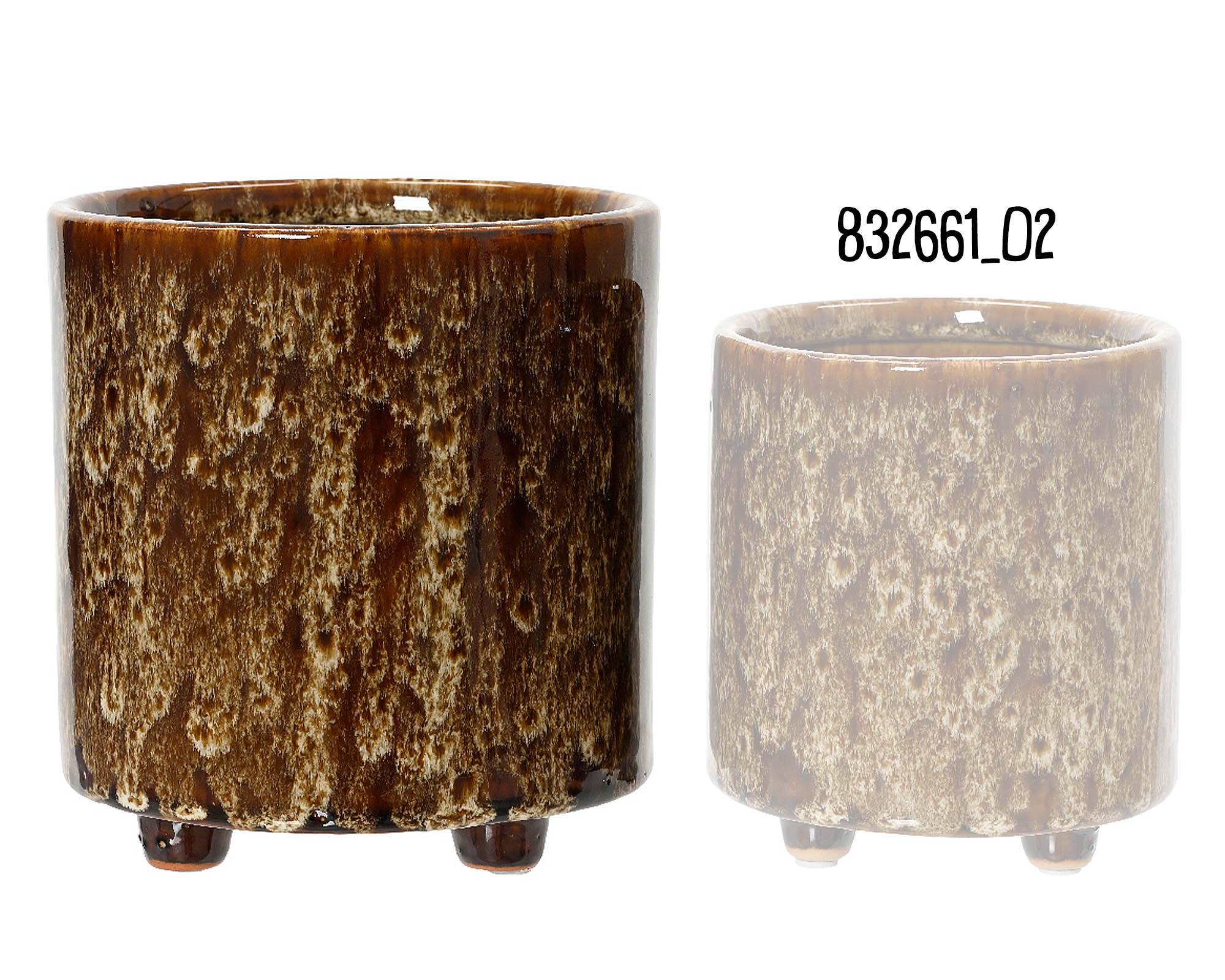 Cachepot con Piedini Smaltato Marrone D14,5x15cm in Ceramica – Kaemingk