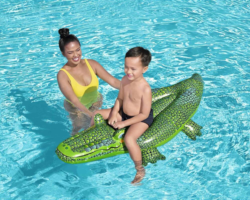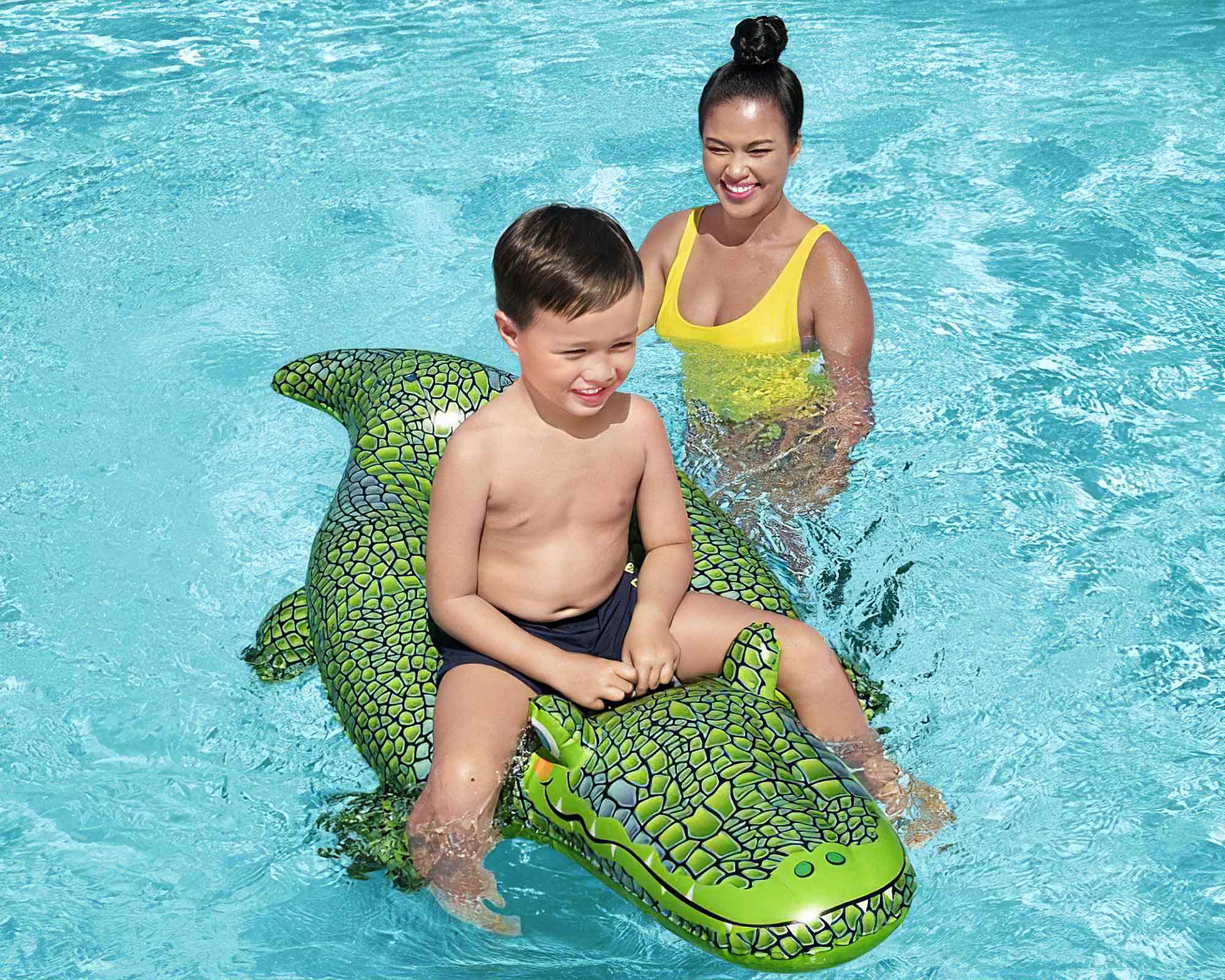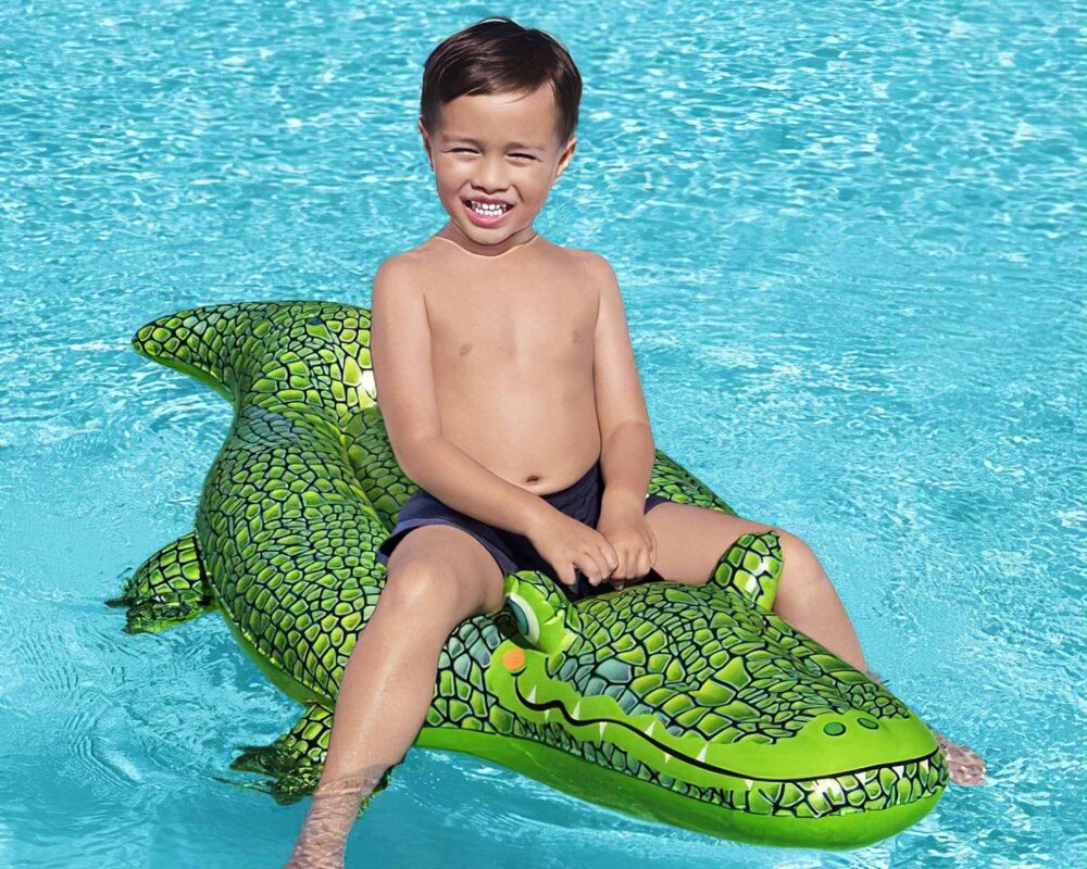 Il cavalcabile coccodrillo è un divertente e colorato giocattolo gonfiabile perfetto per i bambini. Con le sue dimensioni di 152×71 cm, offre un’ampia superficie di gioco su cui i bambini possono salire e cavalcare per ore di divertimento.