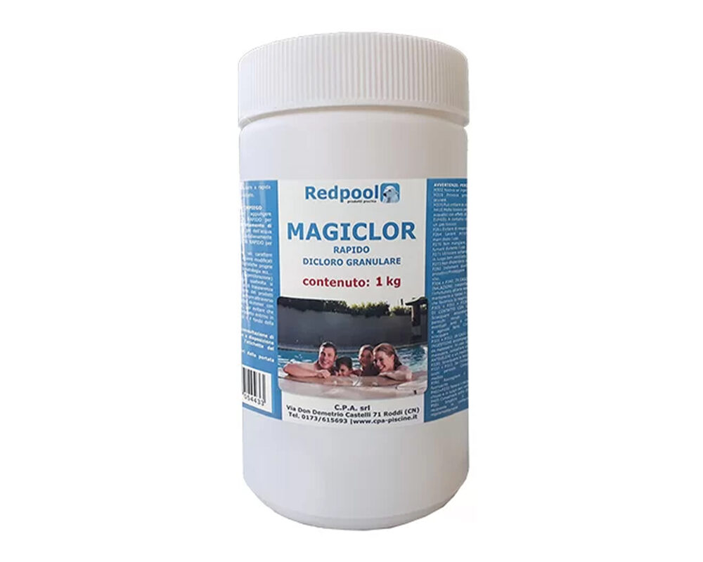 Il dicloro granulare rapido MagiClor da 1kg è un prodotto adatto alla disinfezione dell’acqua della piscina o della vasca idromassaggio. Questo prodotto è particolarmente efficace grazie alla sua formulazione a base di dicloro, un potente agente disinfettante che elimina rapidamente batteri, alghe e altri microrganismi dall’acqua della piscina.