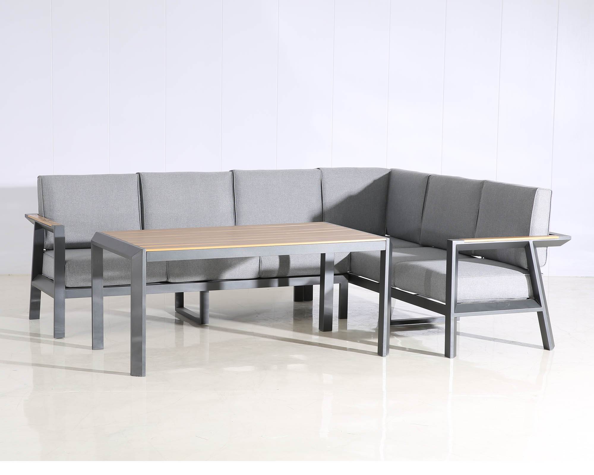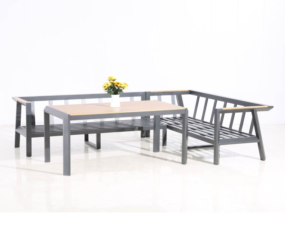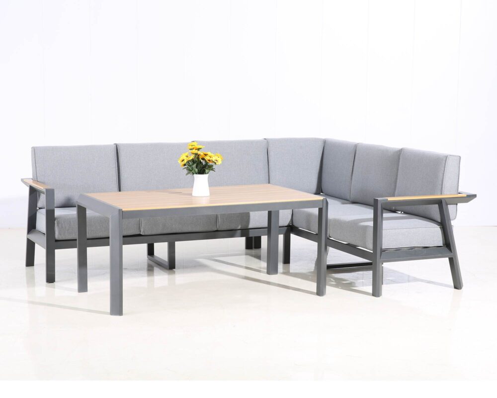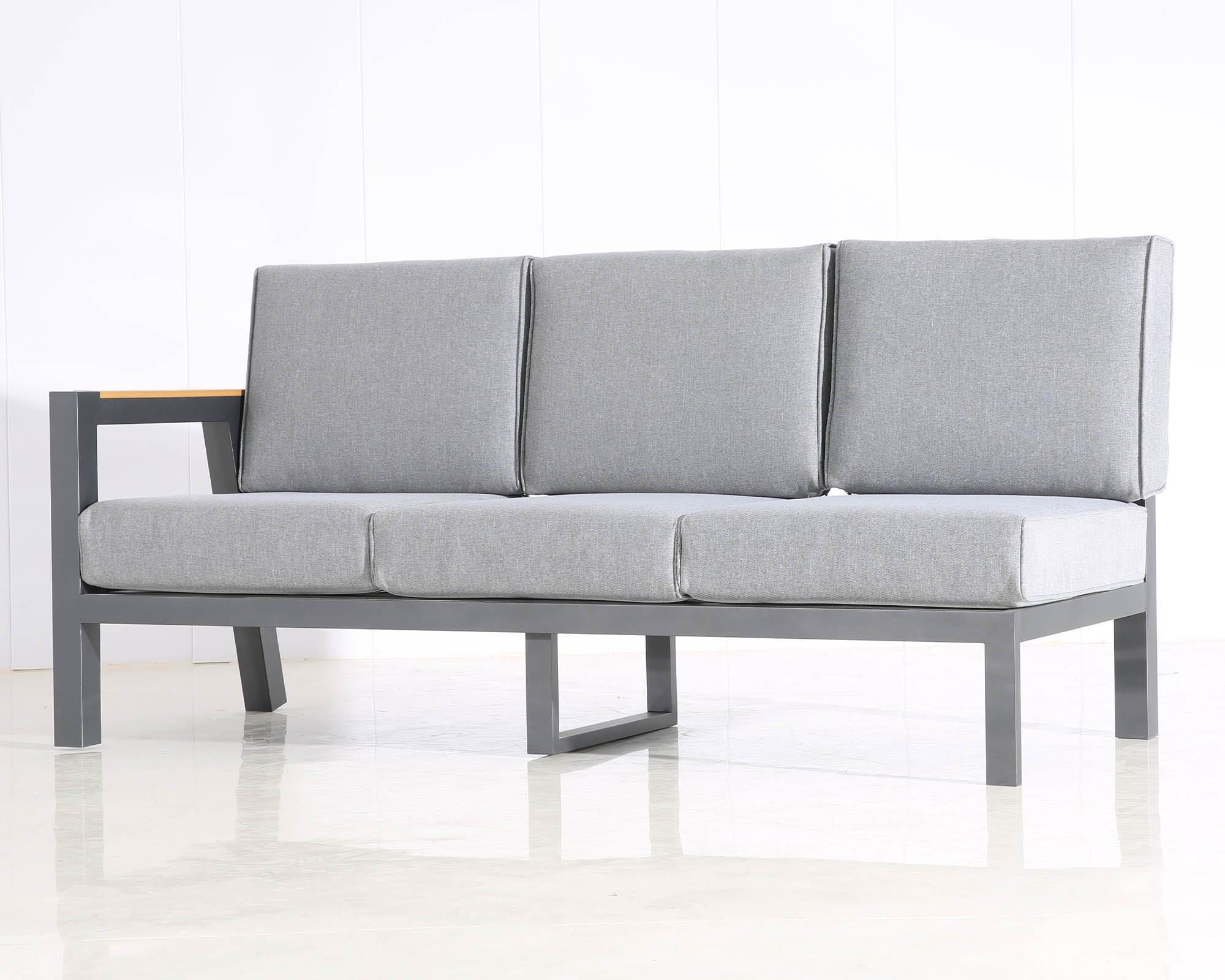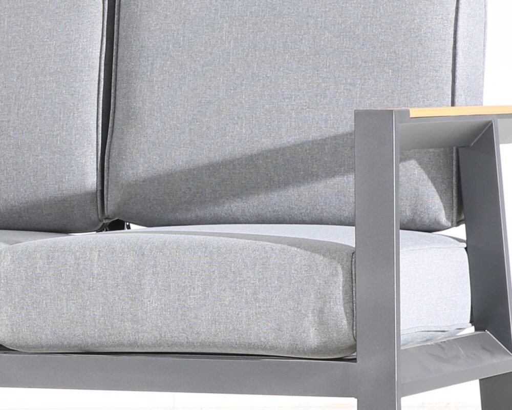 Questo set include tre pezzi: un angolo e due sedute con braccioli, progettati per offrire il massimo comfort. I cuscini spessi e morbidi assicurano una seduta comoda e rilassante, perfetta per trascorrere momenti piacevoli all’aperto con famiglia e amici. La struttura in alluminio è leggera ma robusta, permettendo una facile movimentazione e una lunga durata nel tempo senza compromessi sulla stabilità.