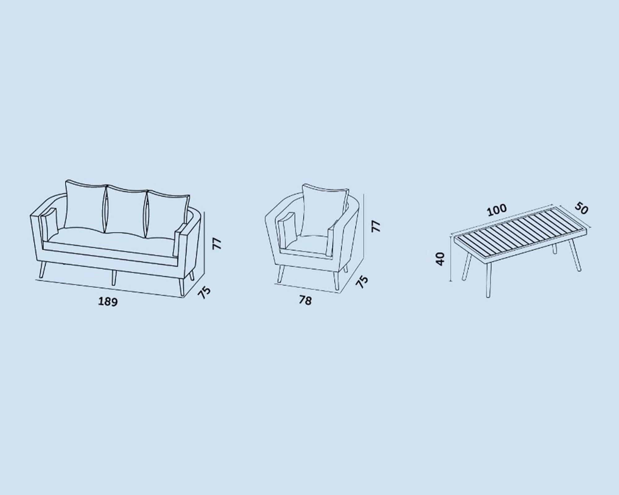 I cuscini imbottiti in poliestere sono studiati per garantire comfort e praticità, perfetti per rilassarsi durante le giornate di sole. Lo schienale e le sedute hanno proporzioni ergonomiche, mentre il tavolino ampio offre spazio utile per accessori, bevande o oggetti decorativi.