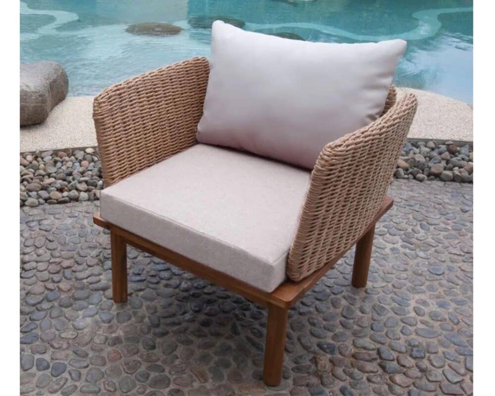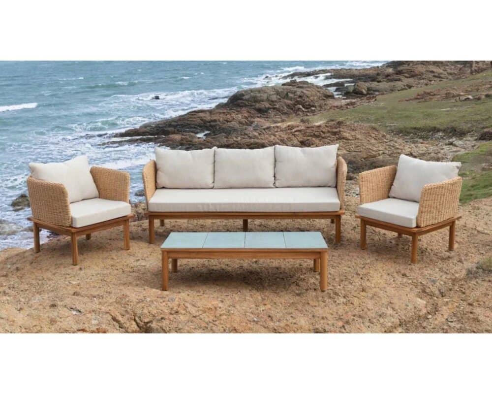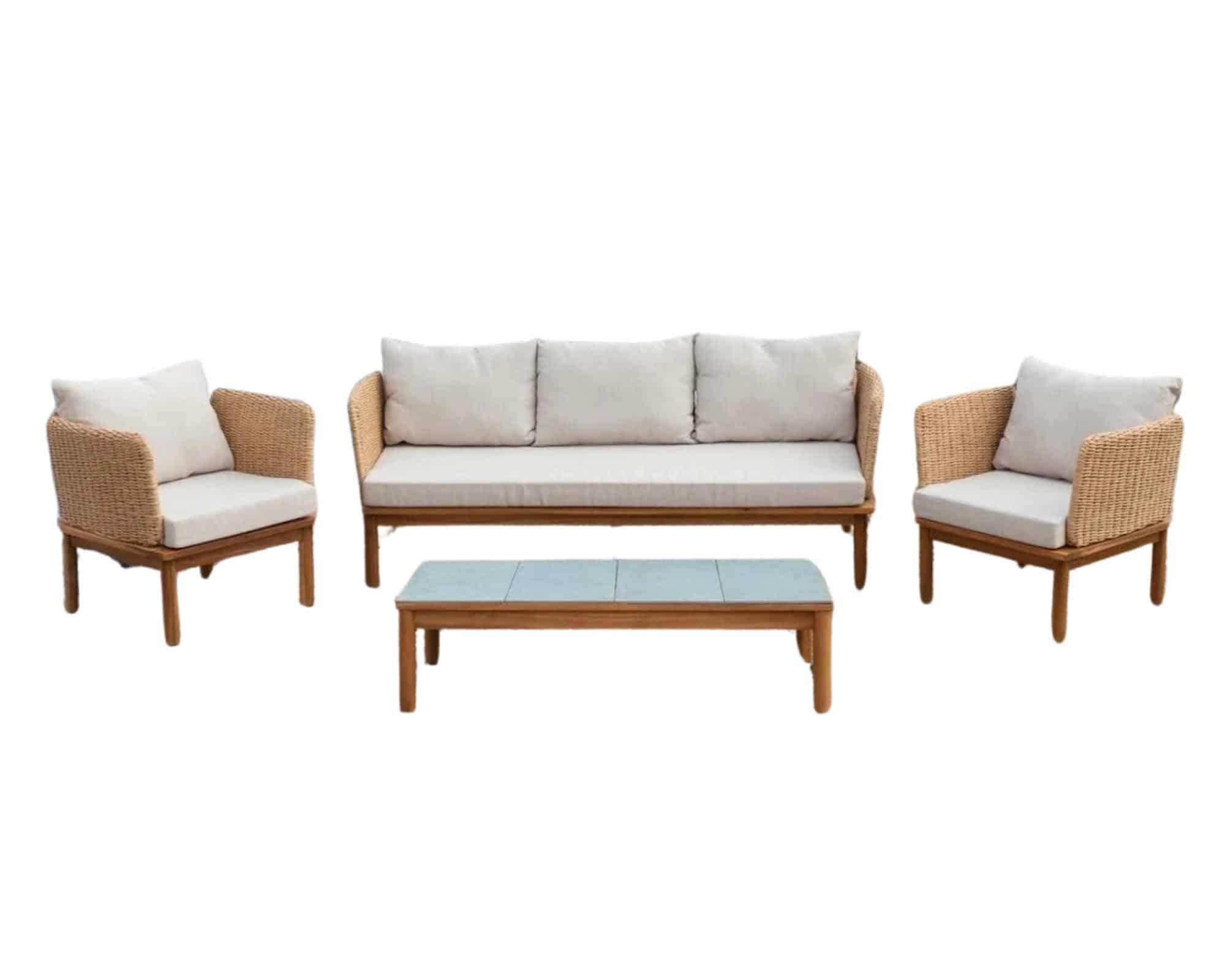 Set 4 Pz Salotto Santa Maria Ecru in Legno di Acacia, Gres e Polyrattan
