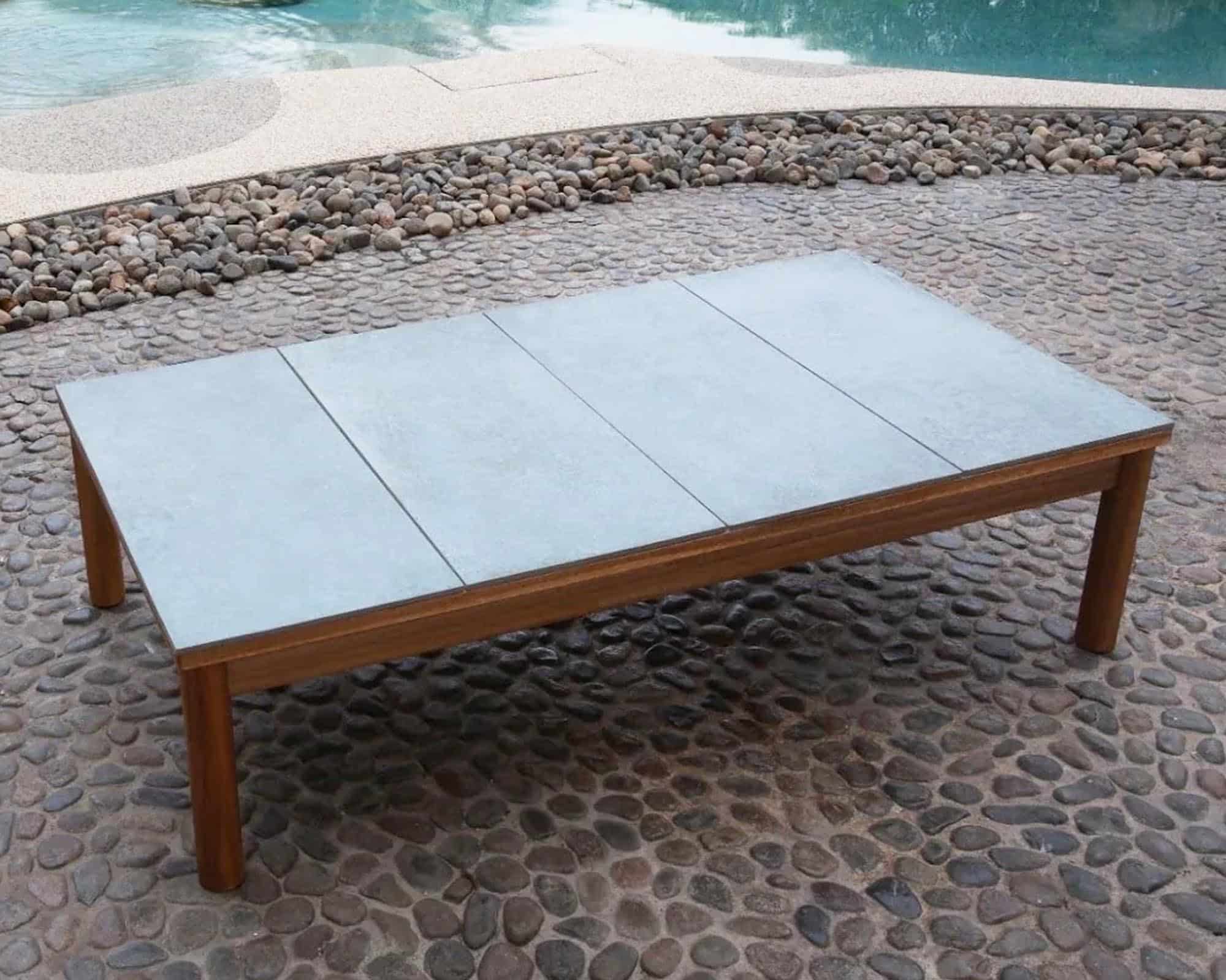 Composto da un divano 3 posti, due poltrone e un raffinato tavolino basso, questo set si distingue per la qualità dei materiali e la cura dei dettagli. Il piano del tavolino è realizzato in gres porcellanato, un materiale ceramico resistente, perfetto per un uso esterno quotidiano.
