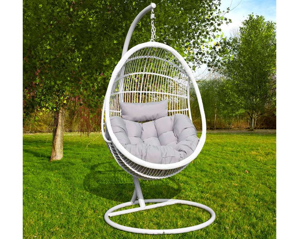 Nido Giove Bianco e Grigio Kordy con Cuscini in Alluminio e Fibra Naturale