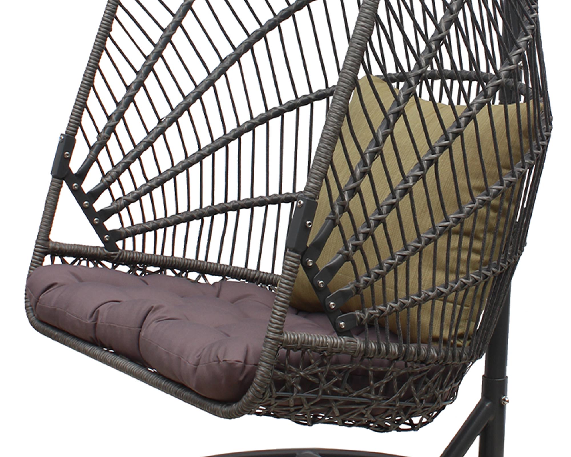 Poltrona Nido ERIS con struttura portante in metallo antracite e fibra grigio melange, perfetta per chi vuole arredare con orginalità ed eleganza terrazzo o giardino, può sostenere sino a 120 kg. Una poltrona a dondolo comoda ed accogliente, per i tuoi momenti di relax all’aperto. Resistente alle intemperie e comoda nella seduta, grazie a due morbidi cuscini in due colori coordinati, la sedia a dondolo sospesa ERIS ha un design elegante e discreto che la rende perfetta per l’esterno ma anche per creare un angolo relax in casa.