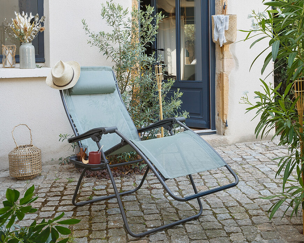 La sdraio-poltrona relax RSXA è un modello classico intramontabile, fabbricato con materiali di qualità e rispettosi dell’ambiente. Leggera e richiudibile, robusta e pratica, è la compagna «vintage» dei bei momenti all’esterno o all’interno. Poggiatesta ergonomico, regolabile e removibile, vi consentirà di regolarla perfettamente per il massimo comfort.