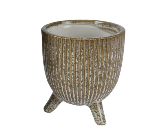 Cachepot con Piedini Rigato Verde D11x12,5cm in Ceramica – Kaemingk