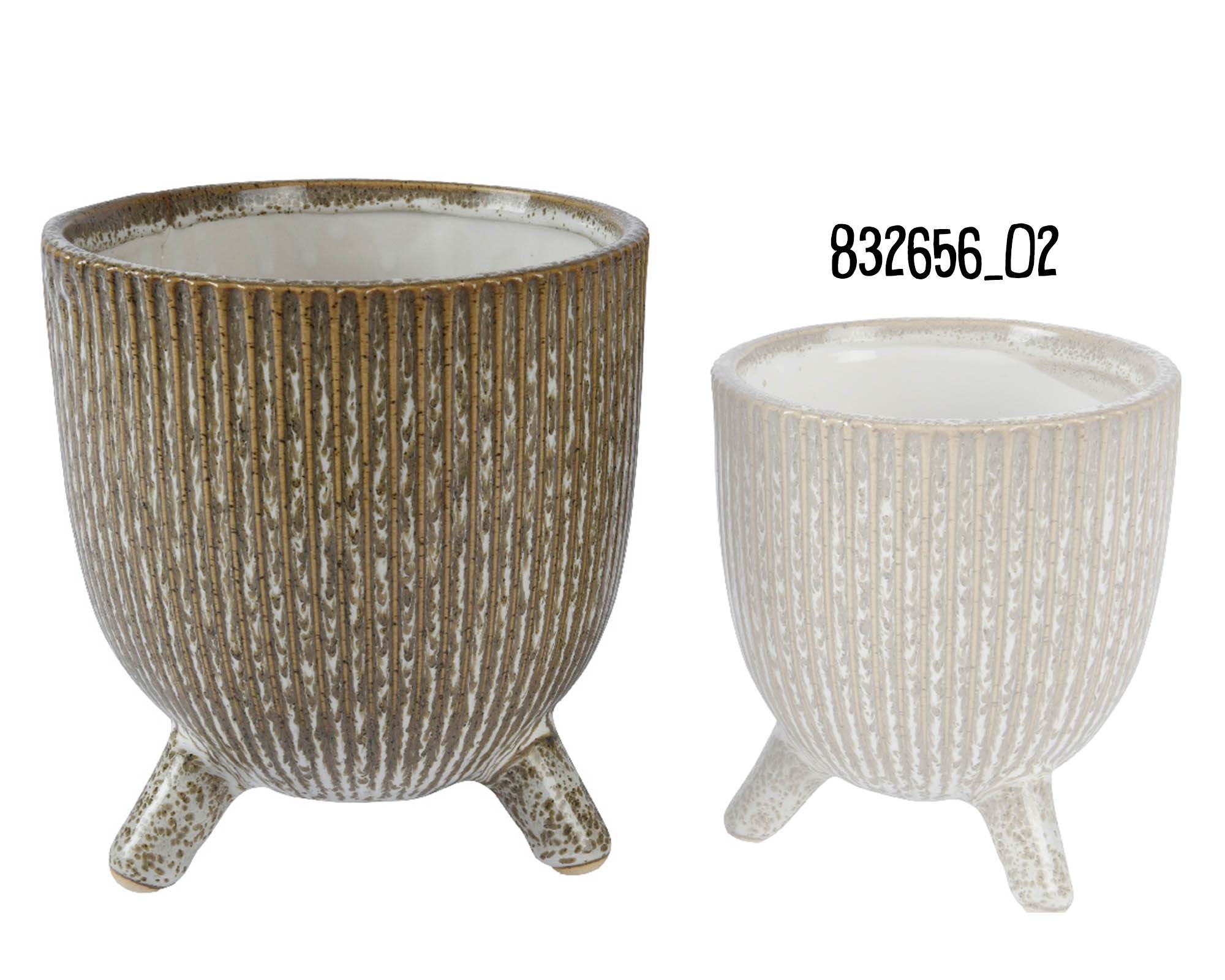 Cachepot con Piedini Rigato Verde D14,5x16cm in Ceramica – Kaemingk