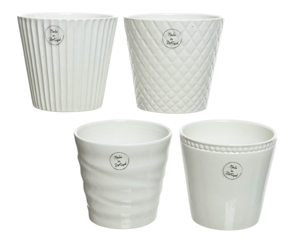 Cachepot Conico Bianco Deco Rilievo Assortito D13,5x13cm in Ceramica – Kaemingk
