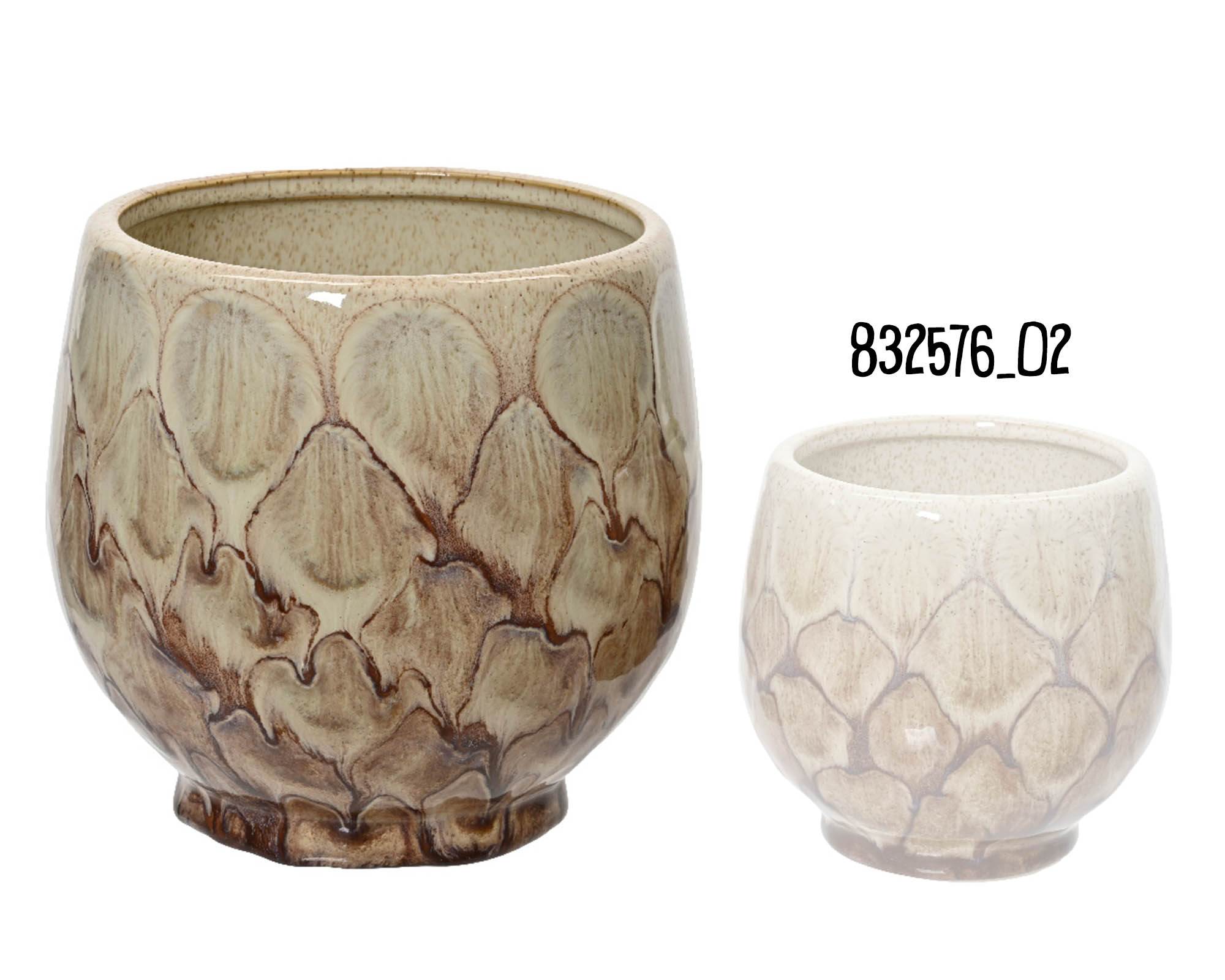 Cachepot Smaltato Rombi Marrone D16x15cm in Ceramica – Kaemingk