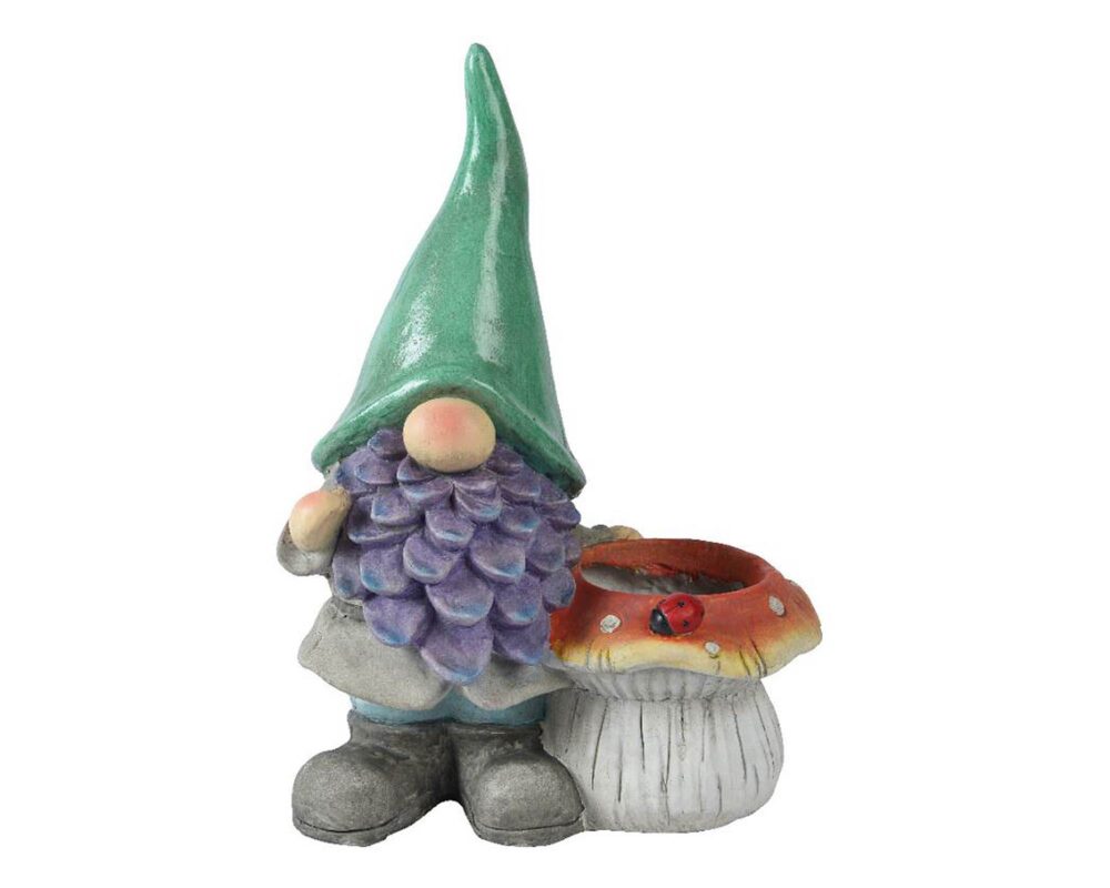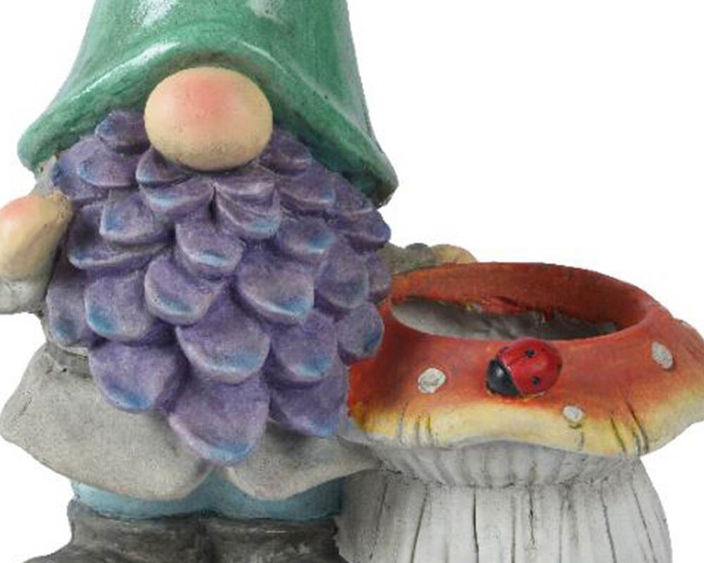 Statua Gnomo da Giardino con Fungo Verde e Viola 32x18x45cm in Magnesio – Kaemingk