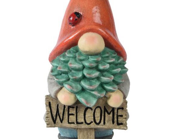 Statua Gnomo da Giardino Welcome Rosso e Verde 18x20x47cm in Magnesio – Kaemingk