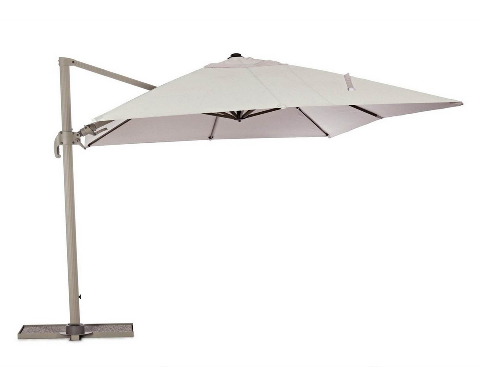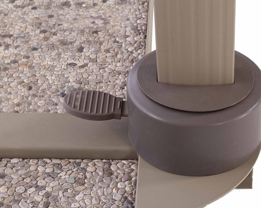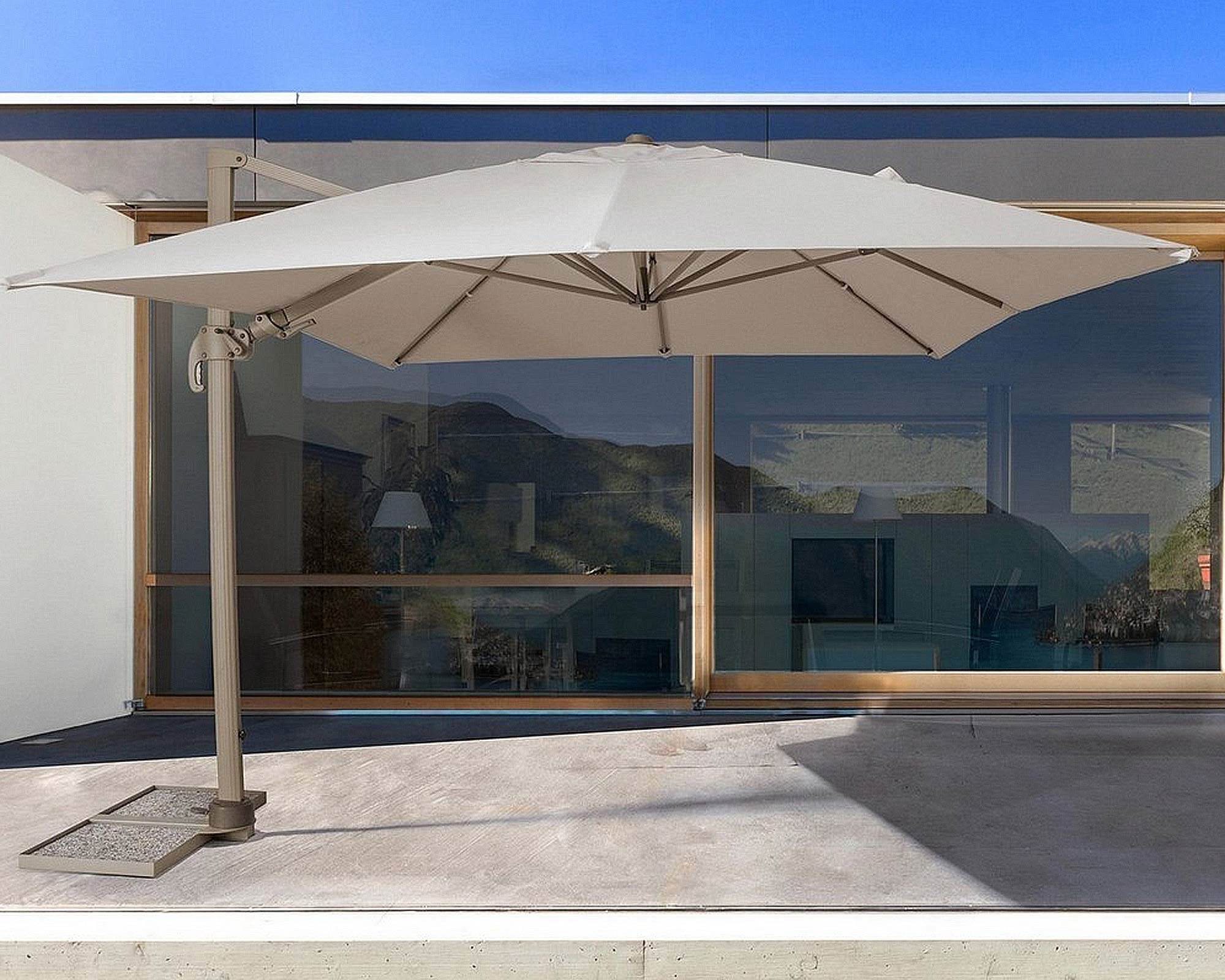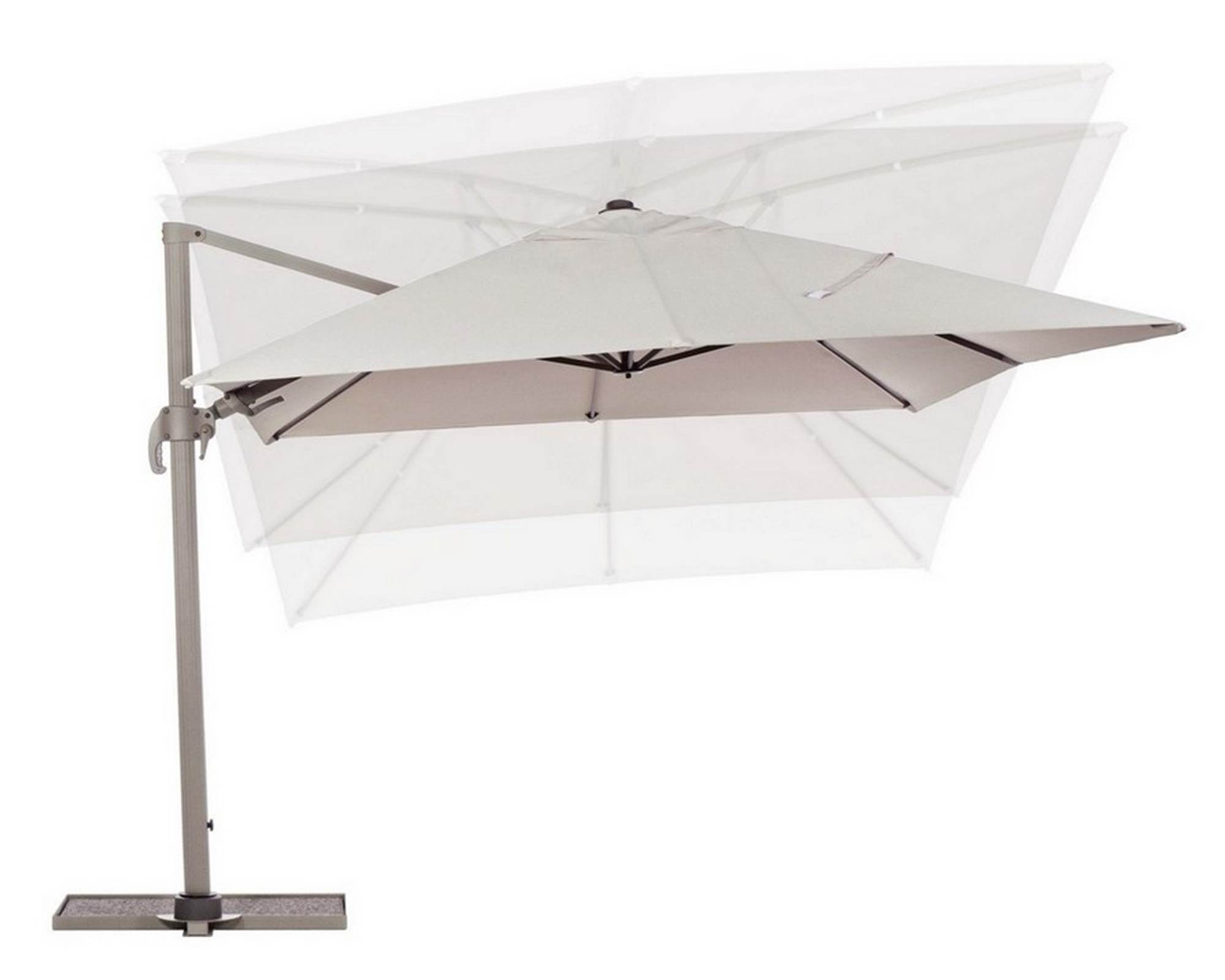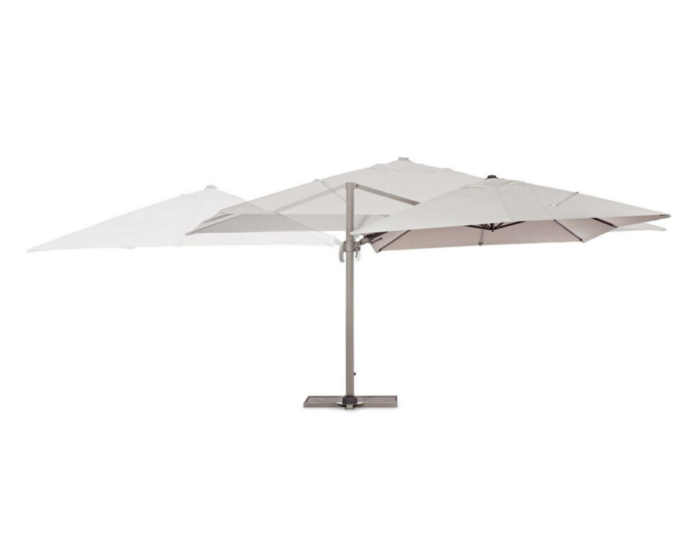 Dotato di una base laterale in acciaio, l’ombrellone può essere facilmente posizionato e fissato, garantendo stabilità anche in condizioni ventose. Il palo ruota a 360° con pedalina ti permette di regolare l’ombrellone in base alle diverse posizioni del sole, mentre l’inclinazione verticale con impugnatura a 5 posizioni ti consente di adattare l’ombrello alle tue esigenze di ombra.