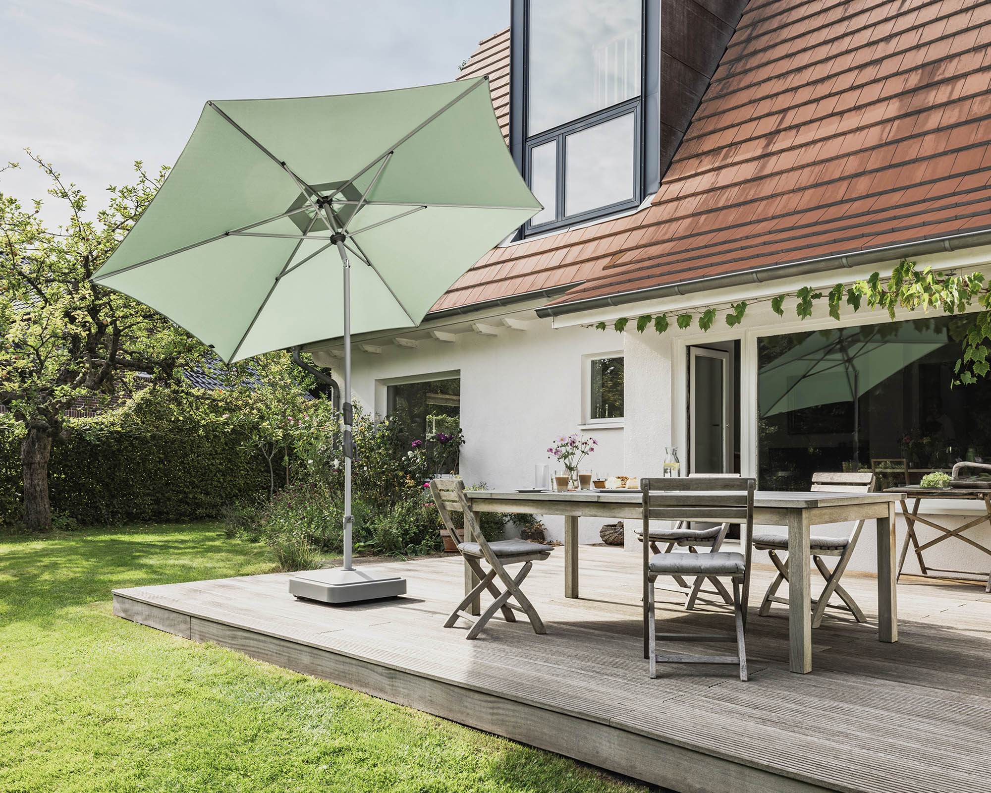 La copertura in poliestere fornisce una protezione efficace dai raggi UV, offrendo una piacevole ombra durante le giornate soleggiate. Il design del sistema di apertura scorrevole (Slide) rende questo ombrellone facile da configurare, aggiungendo praticità al suo fascino.