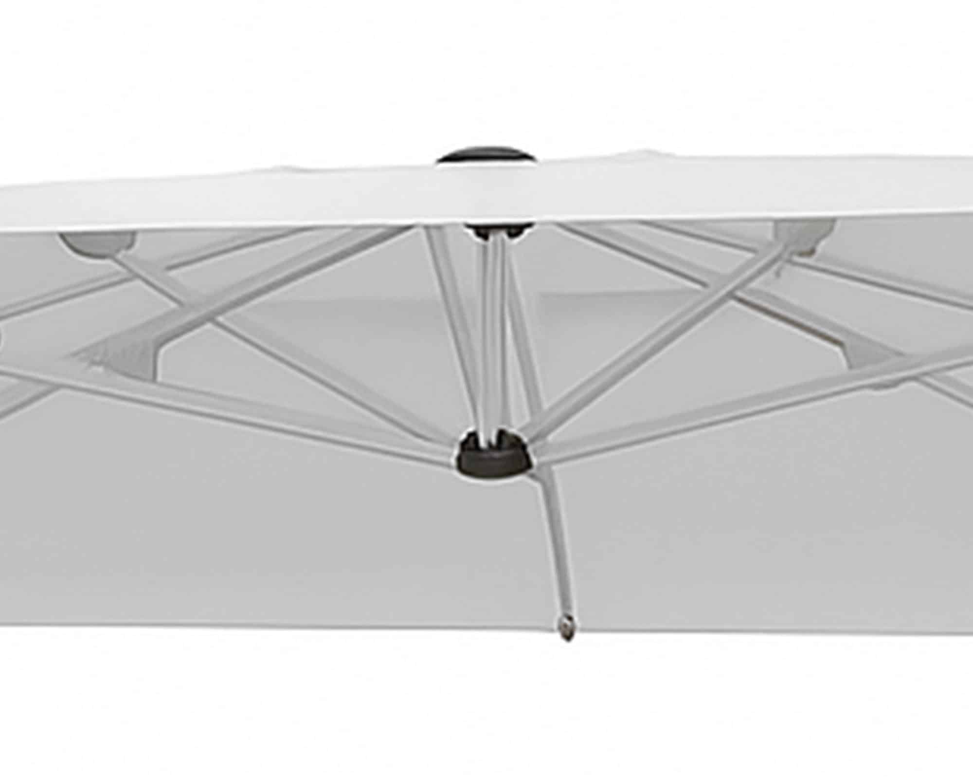 Il palo laterale decentrato permette di sfruttare al massimo lo spazio sottostante, senza l’ingombro del palo centrale. Dotato di sistema di apertura a manovella, è facile da aprire, regolare e richiudere in pochi gesti.