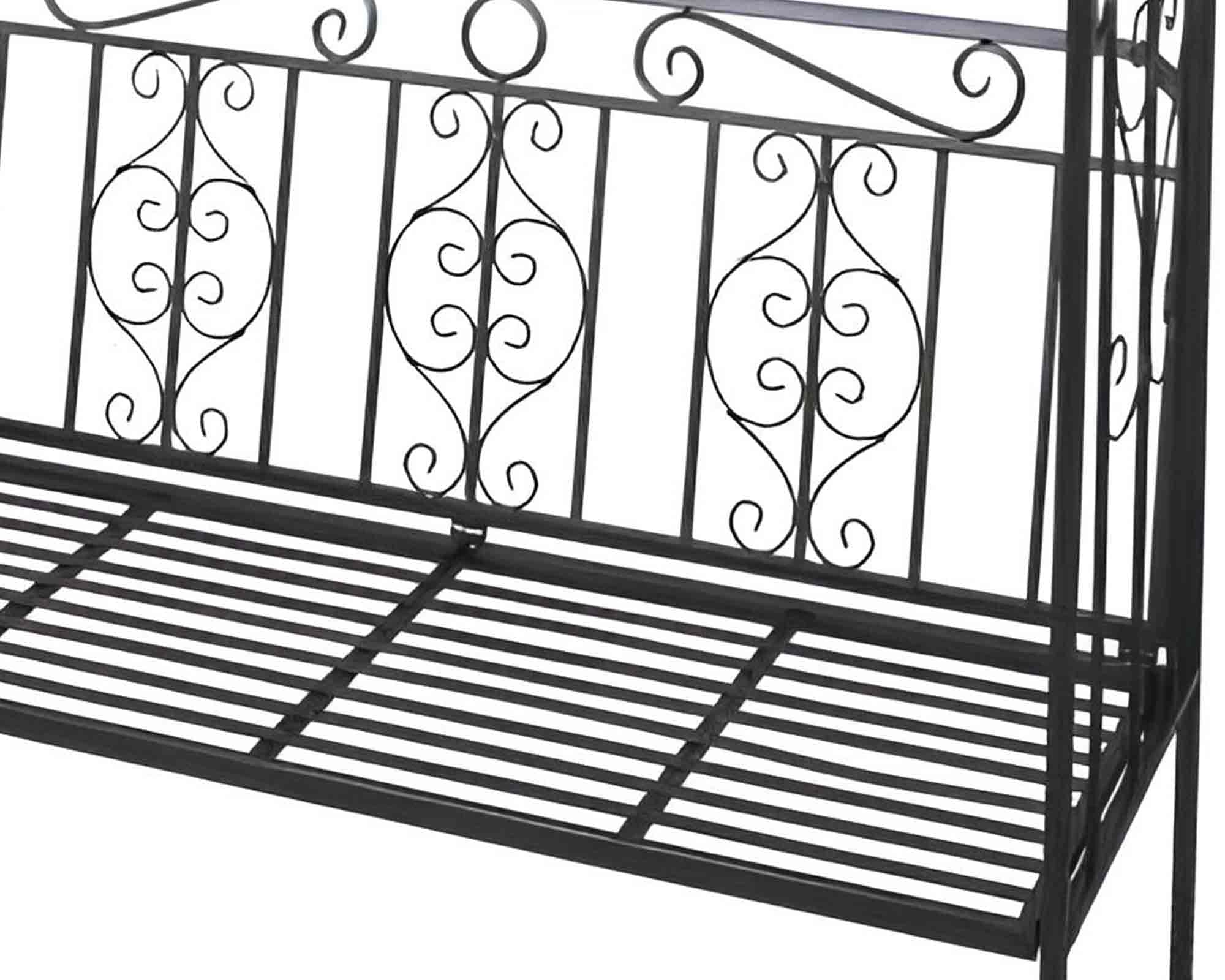 Elegante e scenografica, questa panca con arco in metallo è un elemento d’arredo perfetto per giardini, terrazze, porticati o verande. La struttura ad arco alta 230 cm crea una cornice suggestiva, ideale per accogliere piante rampicanti, luci decorative o tessuti leggeri.