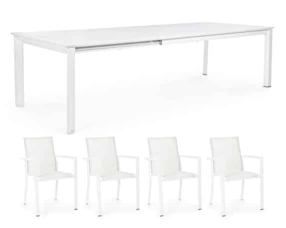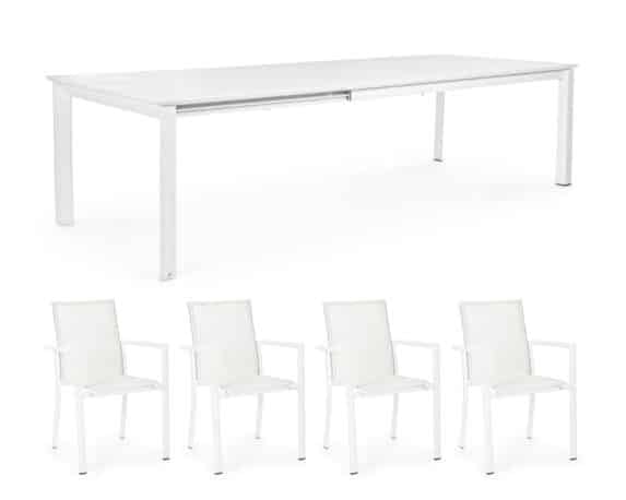 Set Pranzo Konnor 200/300x110h + 4 Poltrone Konnor Bianco in Alluminio e Textilene – Bizzotto