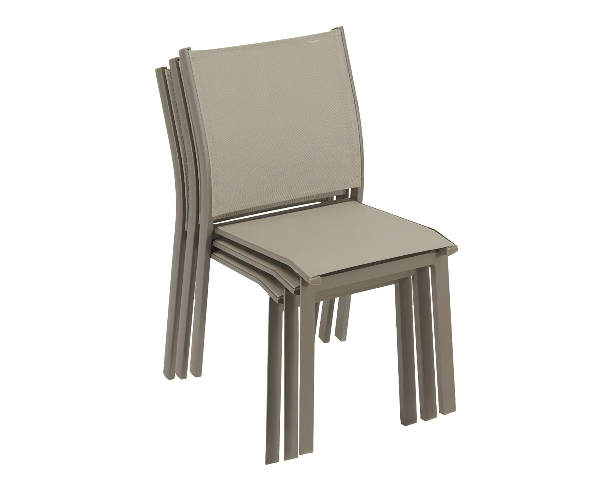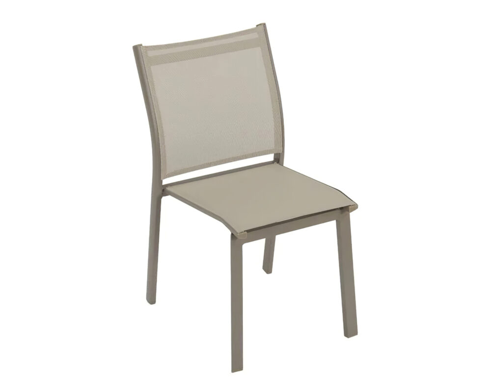 Le 4 sedie Karol, incluse nel set, sono perfettamente abbinabili al tavolo, creando un’armoniosa combinazione. La struttura delle sedie è realizzata in alluminio, offrendo una base solida e leggera. Il confortevole schienale in textilene, di colore beige, conferisce un tocco di stile e rende le sedie piacevoli e fresche anche nelle calde giornate estive. Un altro vantaggio è la loro impilabilità, che permette di riporle comodamente quando non sono in uso, ottimizzando lo spazio a disposizione.