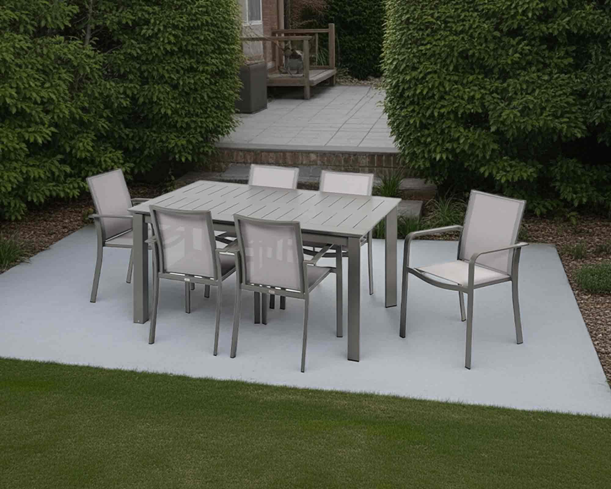 Set Pranzo New Butterfly Taupe 200/300x110cm + 6 Poltrone New Croisette in Alluminio e Textilene