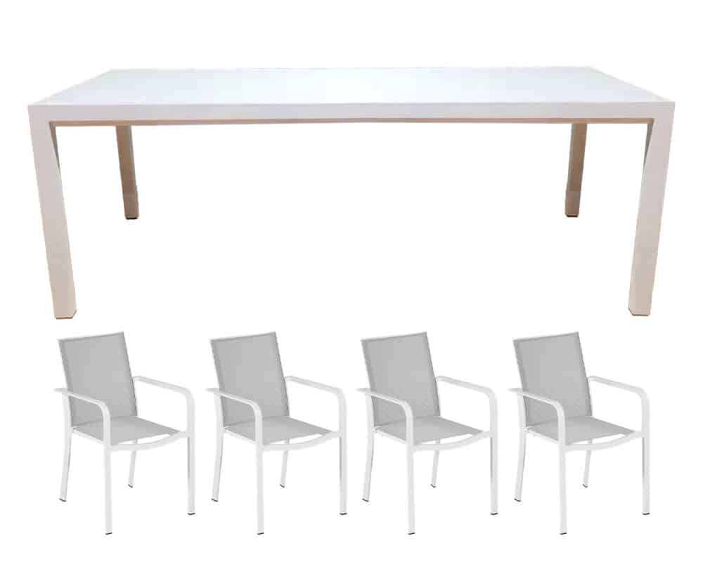 Set Pranzo New Merid 220/340×106 + 4 Poltrone New Croisette Bianco in Alluminio e Textilene