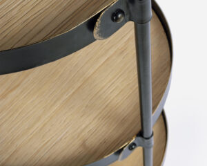 Struttura in acciaio verniciata a polvere epossidica. ripiani in mdf con finitura a base d’acqua.