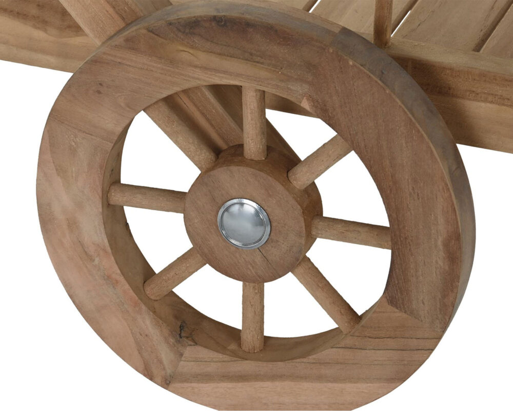 Il legno di teak, scelto per la realizzazione di questo carrello, è noto per la sua resistenza alle intemperie, ai parassiti e all’umidità, il che lo rende perfetto per l’utilizzo in cucina o all’aperto.