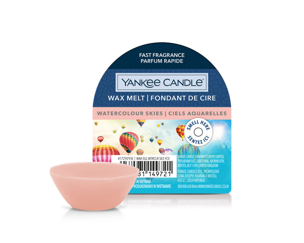 La cera Watercolour Skies è una fragranza delicata e raffinata, prodotta dalla nota casa di profumi americana Yankee Candle, che evoca l’immagine di un cielo azzurro dipinto con colori acquerellati.