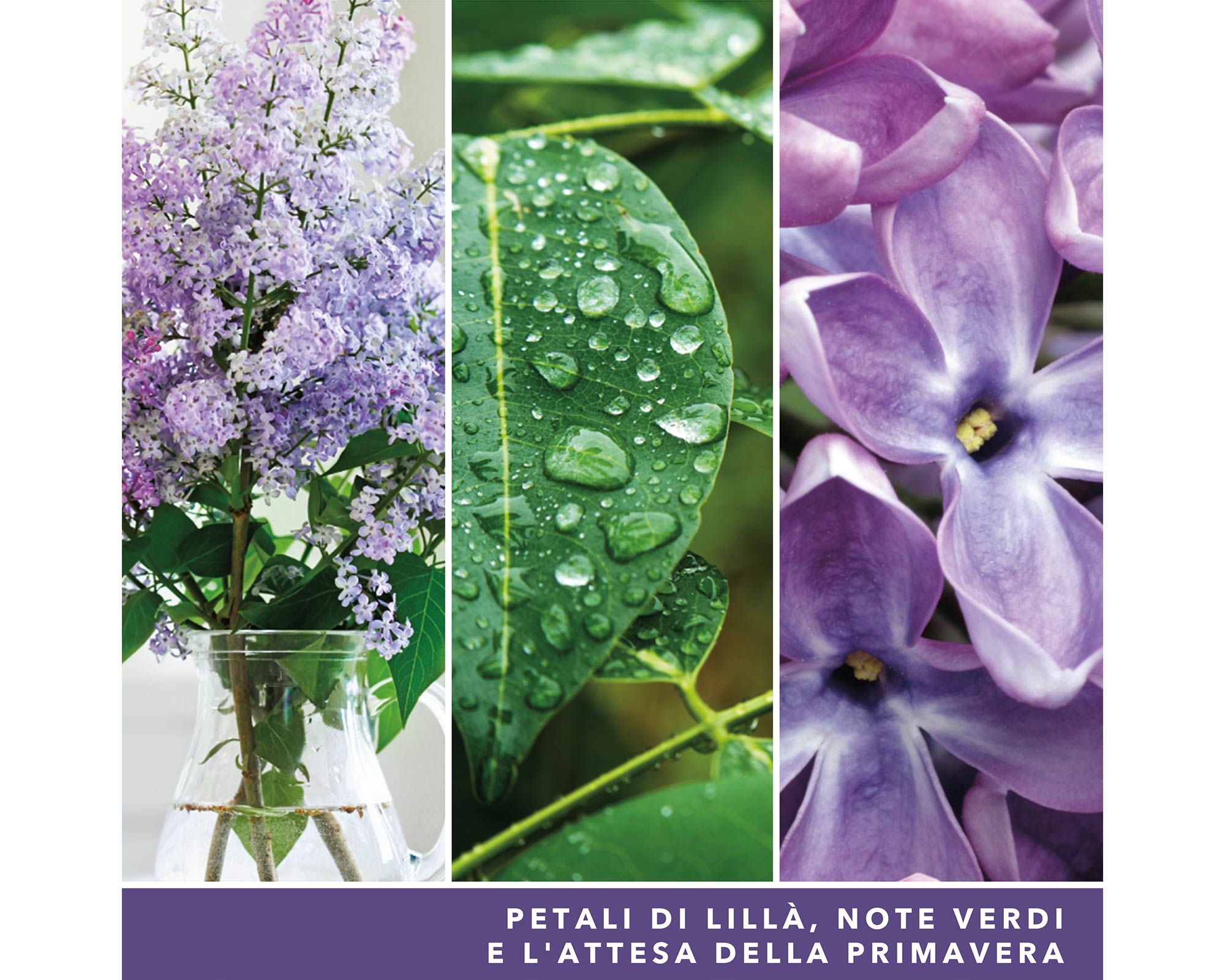 L’invitante profumo ispirato ai campi di lavanda e ai lillà bianchi e viola.