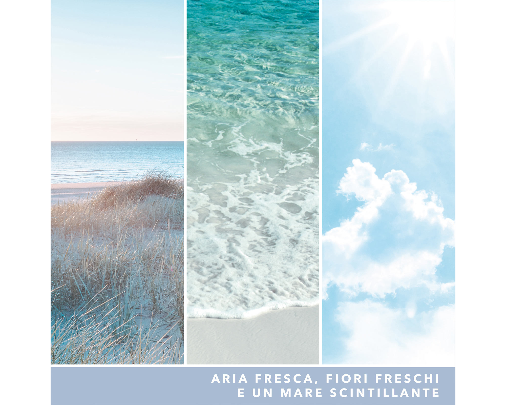 Stendete il vostro telo da spiaggia nella fresca brezza dell’oceano dopo una divertente giornata al sole. Note che evocano l’ozono pulito si mescolano con profumi ispirati al gelsomino, all’ambra bianca e al legno di sandalo.