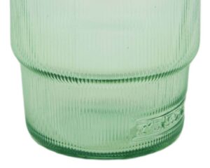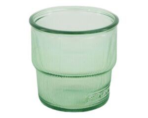 Realizzato con vetro riciclato di alta qualità, questo bicchiere non solo si distingue per la sua estetica accattivante ma contribuisce anche alla sostenibilità ambientale. La tonalità verde trasparente del vetro aggiunge un tocco di vivacità, creando un effetto visivo che cattura l’attenzione senza sforzo.