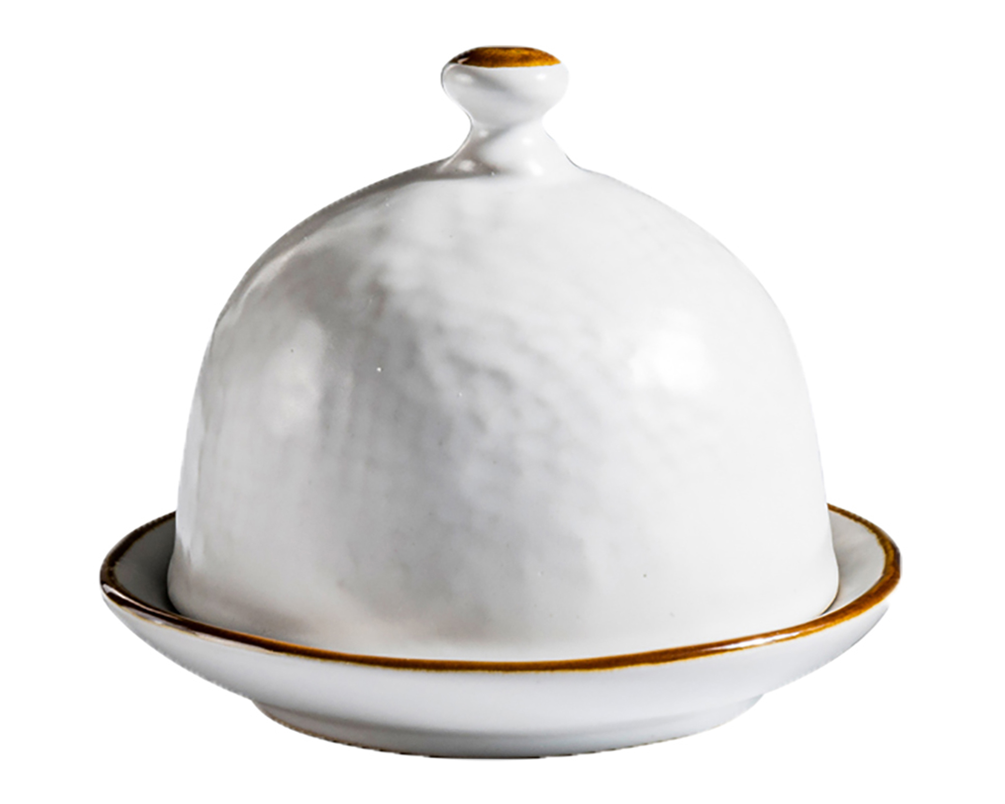 La burriera con coperchio è realizzata con ceramica di alta qualità, possiede un design classico ed elegante.