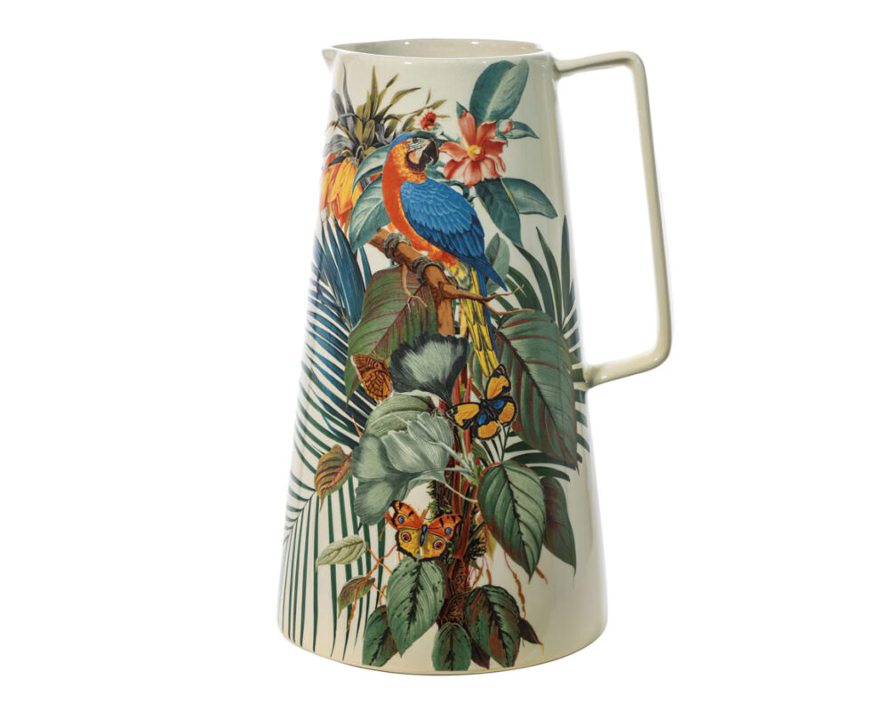 Realizzata in porcellana, porta sulla tua tavola colore ed eleganza. Ideale sia per tavole classiche che moderne, la caraffa è pensata per portare comodamente in tavola grandi quantità di acqua, bevande o succhi da versare nei singoli bicchieri durante il pasto. La maniglia laterale assicura una presa salda e la struttura in plastica è resistente e duratura.