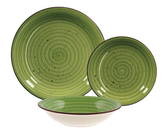 Composto da piatti di diverse dimensioni, il set comprende sei piatti grandi con un diametro di 26,5 cm, sei piatti medi con un diametro di 21 cm e sei piatti piccoli con un diametro di 19 cm. Questa varietà di dimensioni consente di servire una vasta gamma di piatti, dalle pietanze principali ai contorni e agli antipasti, consentendo una presentazione estetica e funzionale dei tuoi pasti.