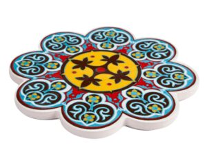 Colorata e allegra sottopentola in ceramica decorata esclusivamente a mano.