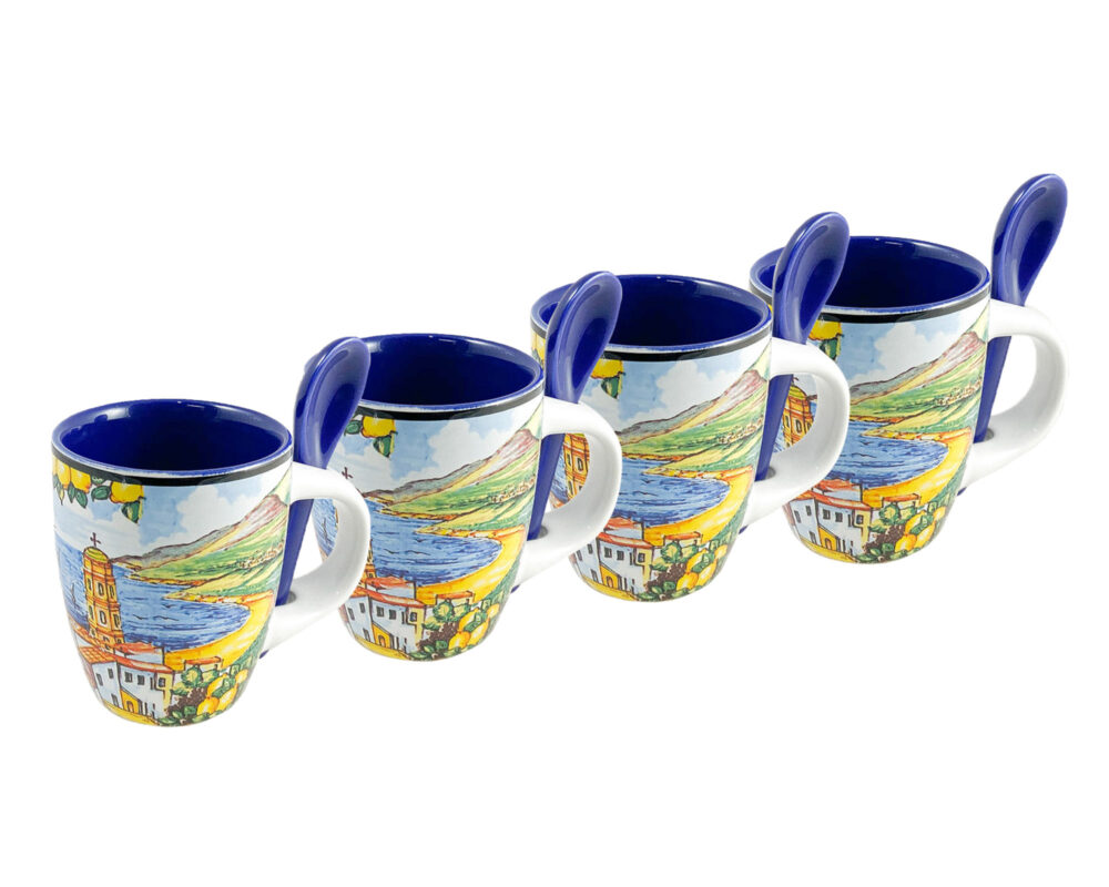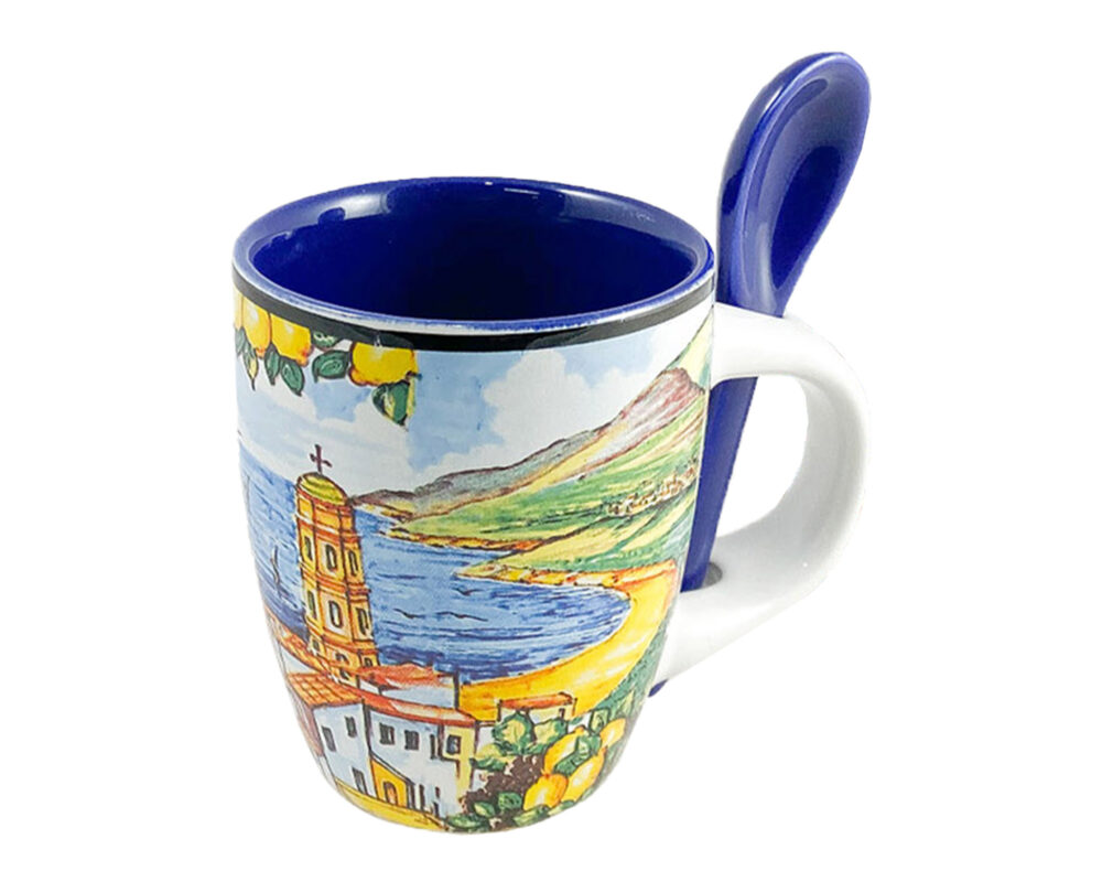 Tazza per caffè in ceramica Amalfi. Dotata di cucchiaino. Dona un tocco di stile alla tua tavola. Perfetta per offrire un buon caffè ai tuoi ospiti.