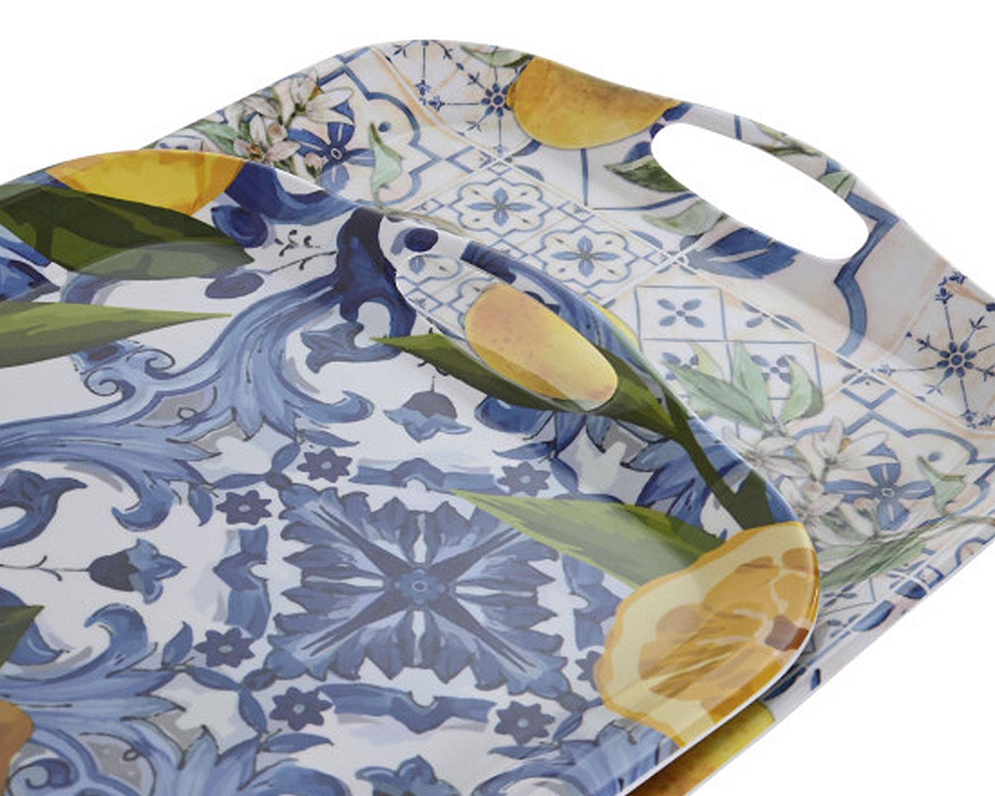 Porta in tavola eleganza e funzionalità con questo vassoio in melamina decorato con raffinati motivi azulei assortiti, ispirati alle iconiche maioliche mediterranee. Perfetto per servire aperitivi, colazioni, dolci o bevande, unisce stile e praticità in ogni occasione.